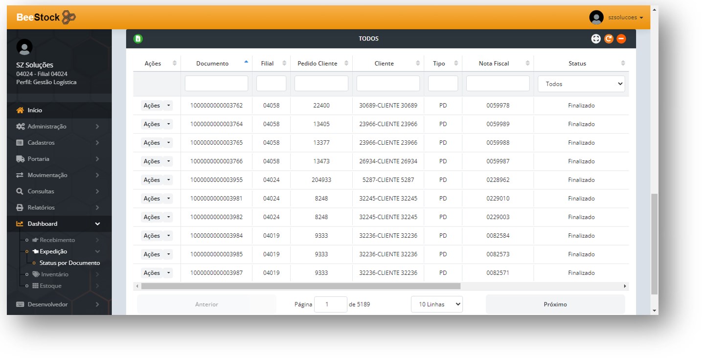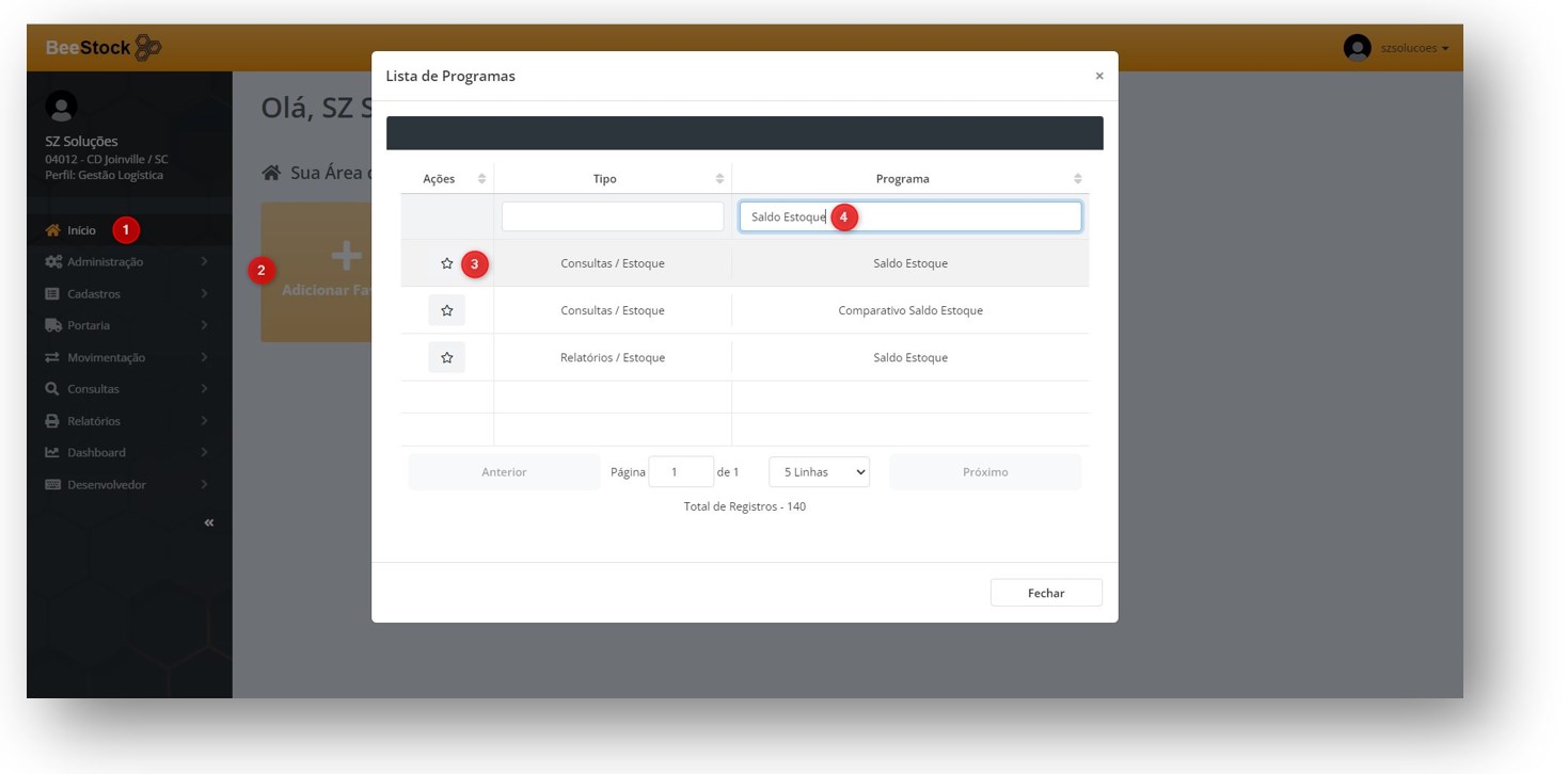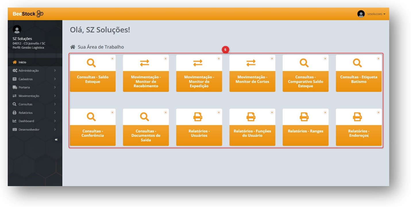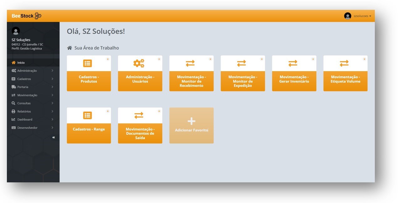 Located in the Home menu, the Your Workspace screen is the user’s home page and offers the possibility to create shortcuts to any screen in the system, allowing the user to quickly access the most used screens without the need to navigate between menus. In this way, it will be possible to use the system in a more practical and objective way.\
