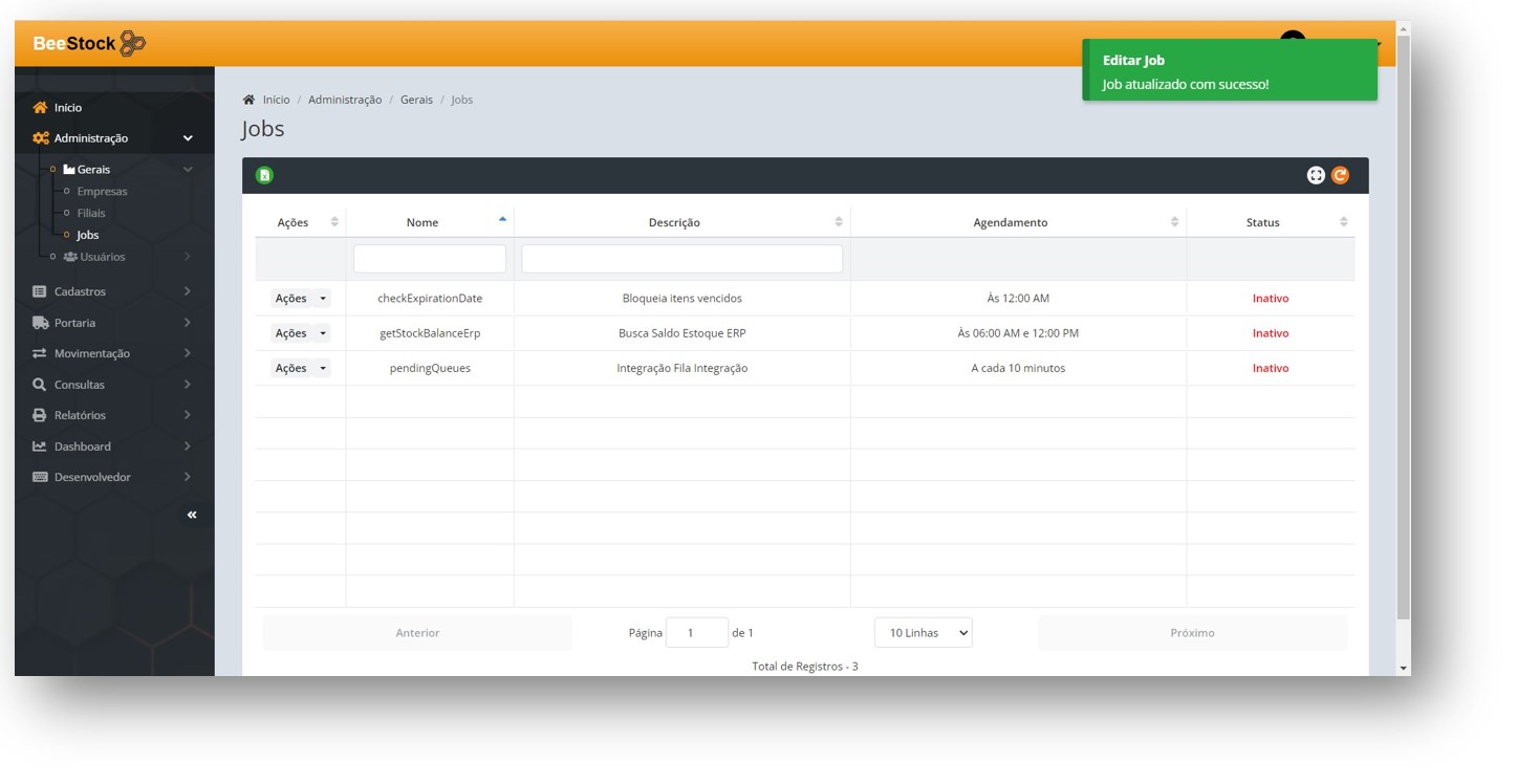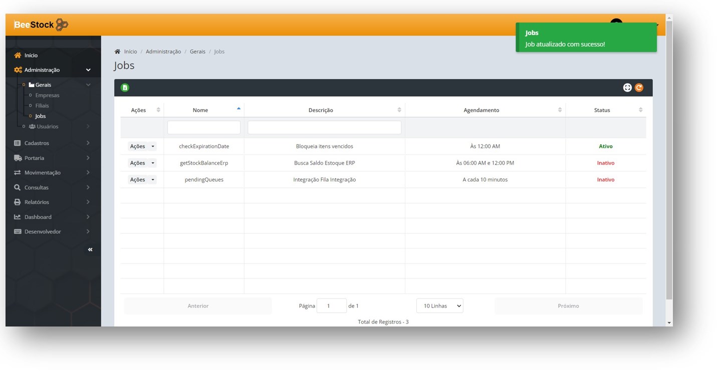 - Clicking on Actions > Activate / Inactivate, the confirmation message Job successfully updated! will be displayed.