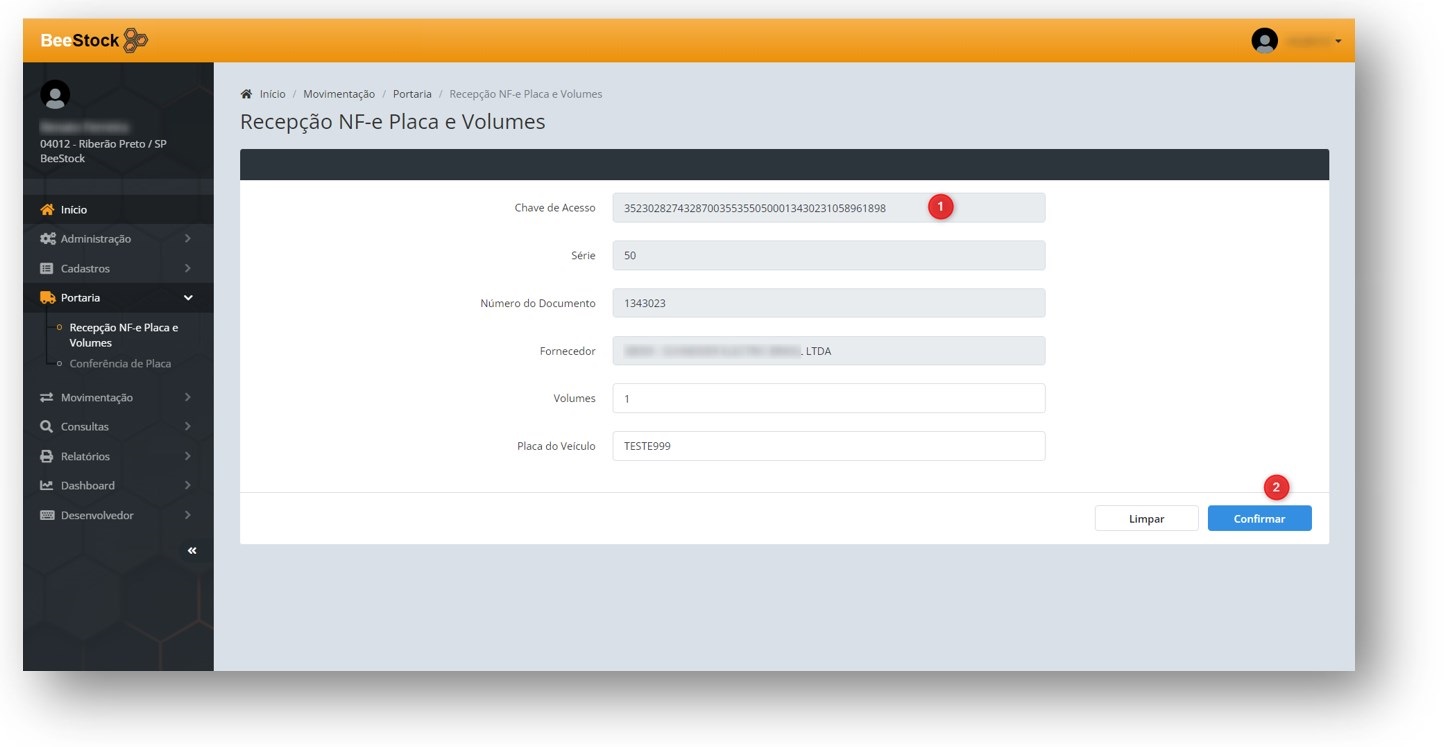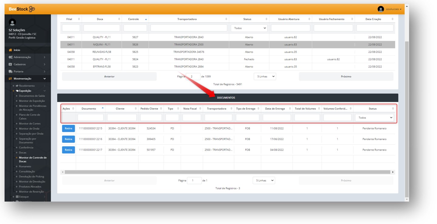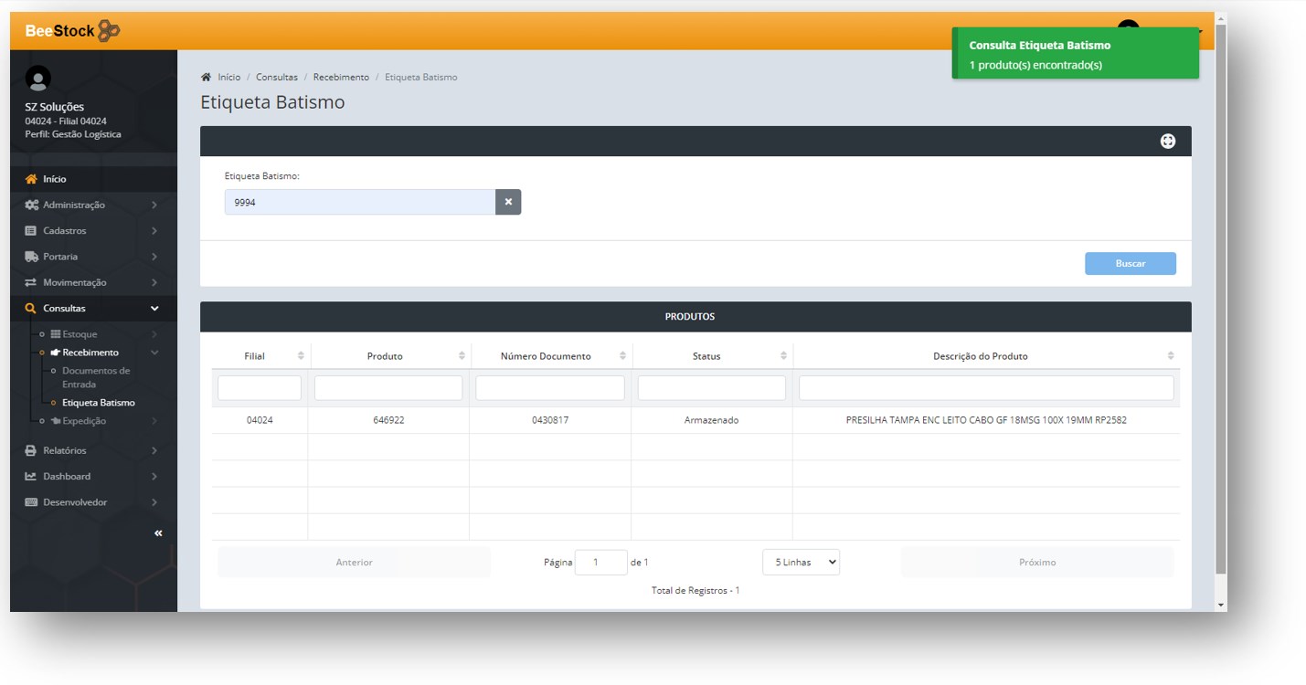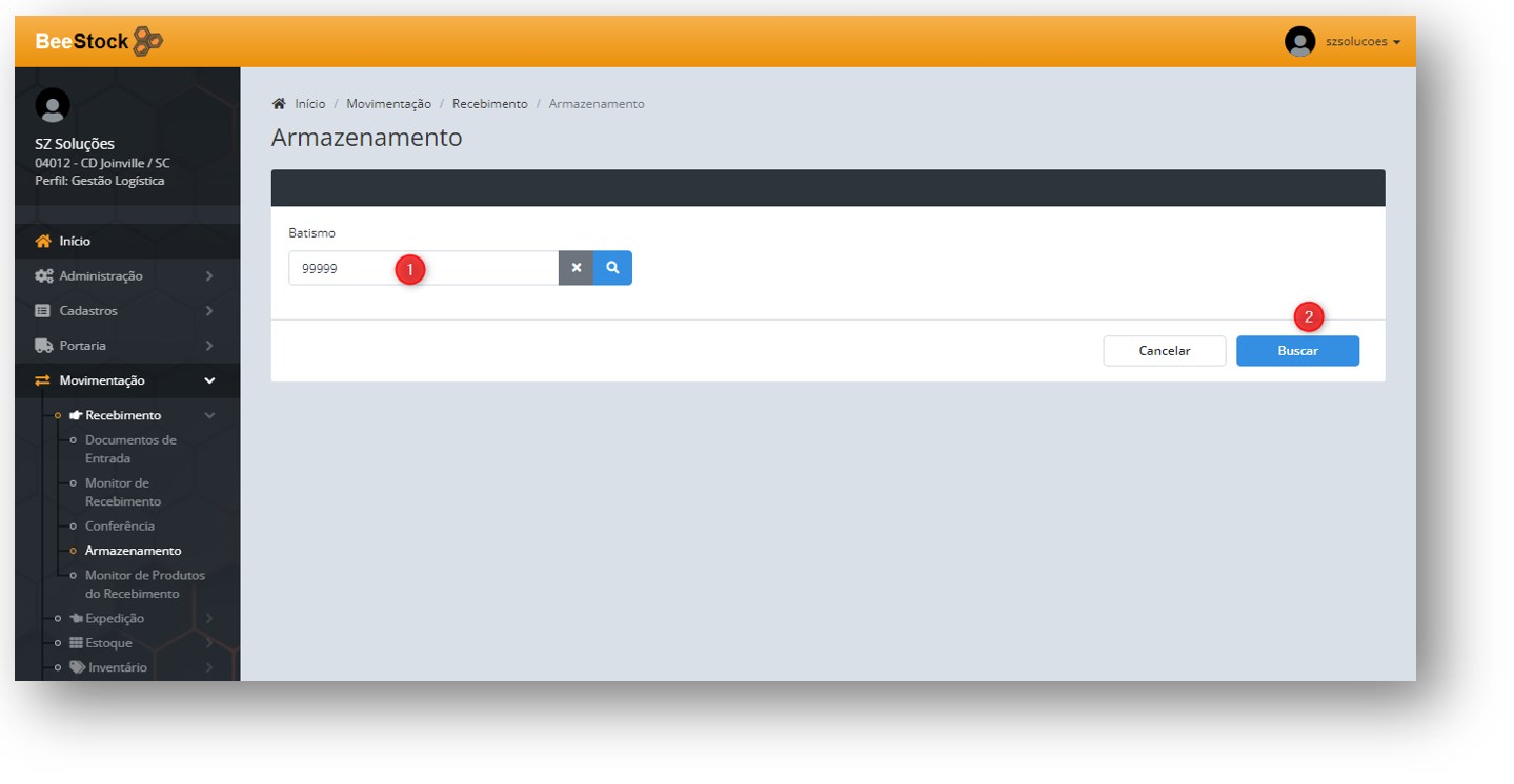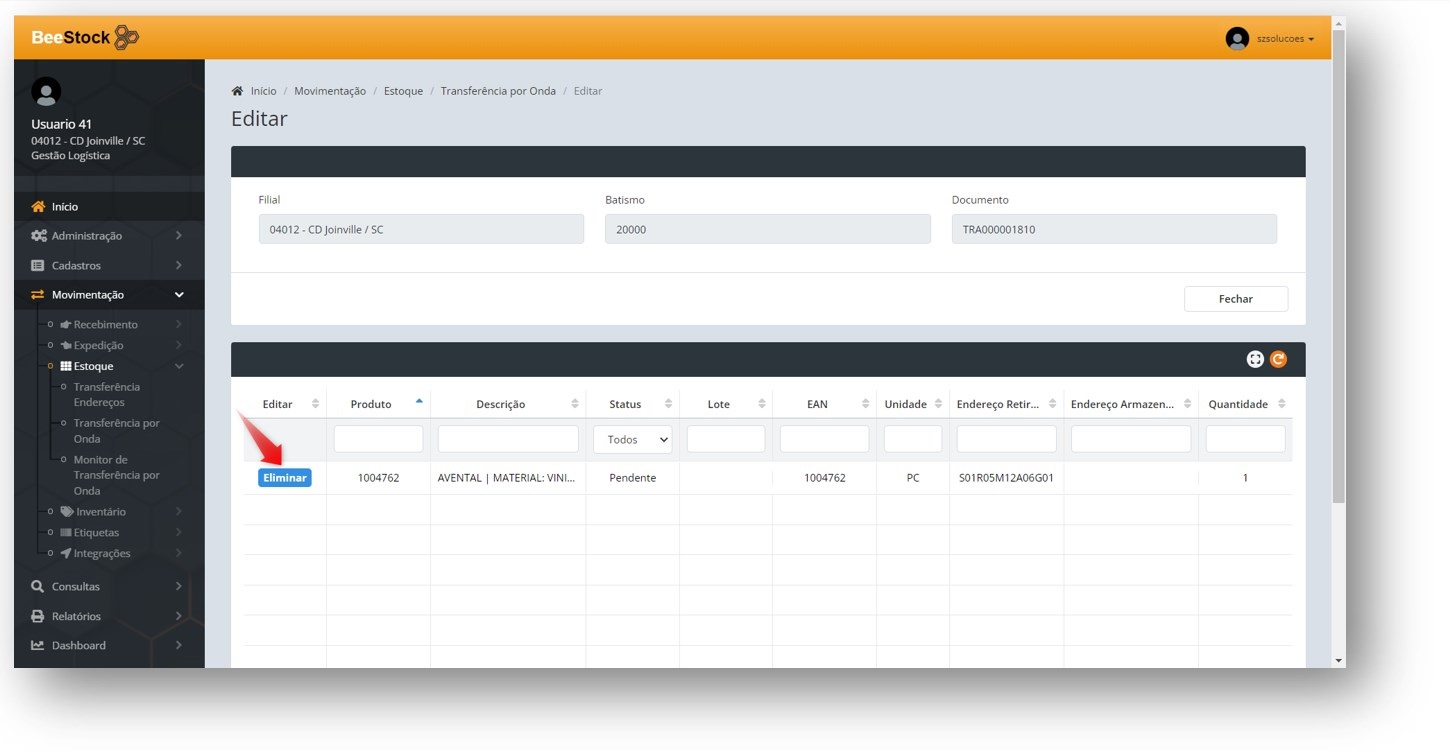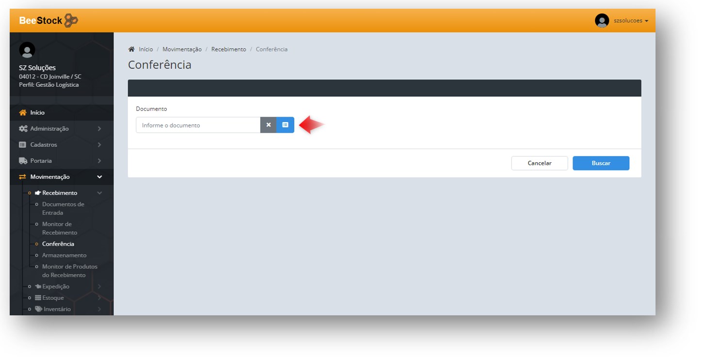In this example, we see the receipt process, where an NFE moves from the REC warehouse to WMS and, after the receipt process, goes to the RV1 warehouse: