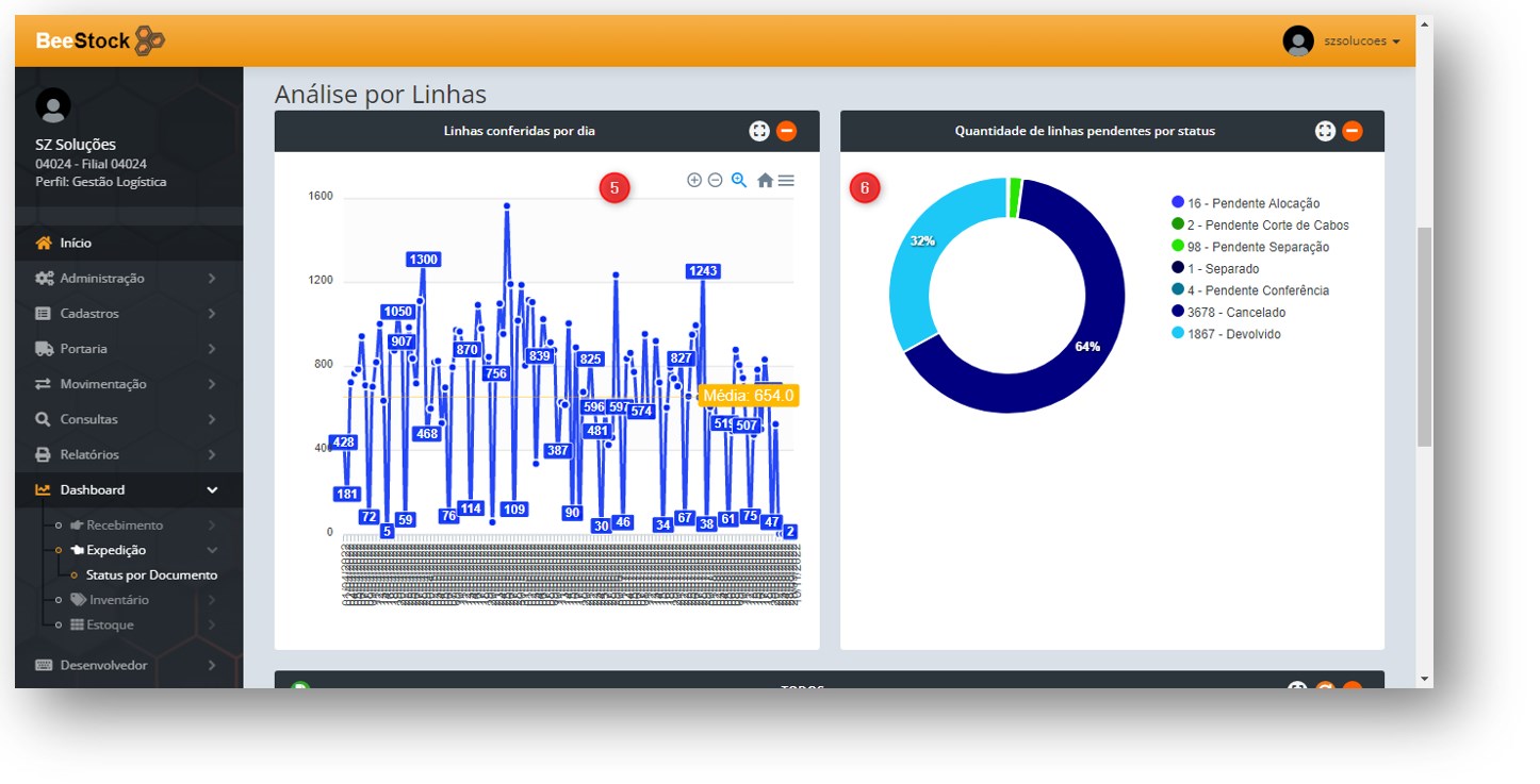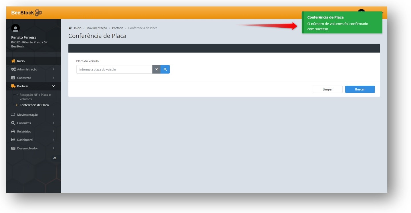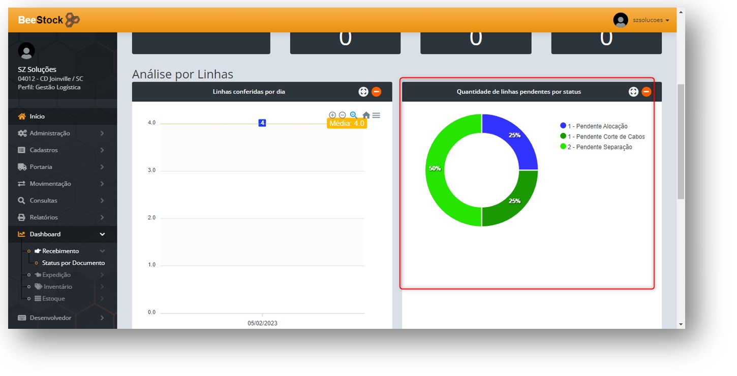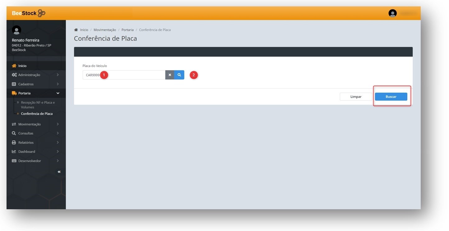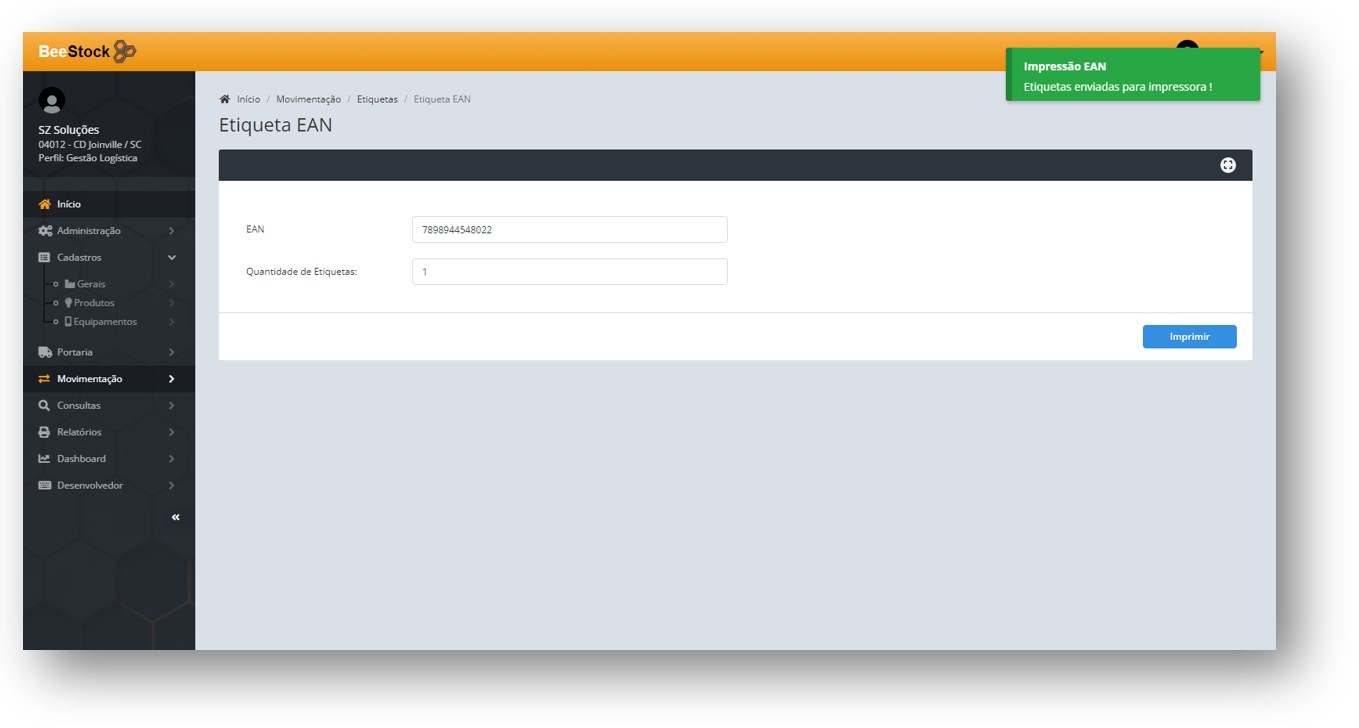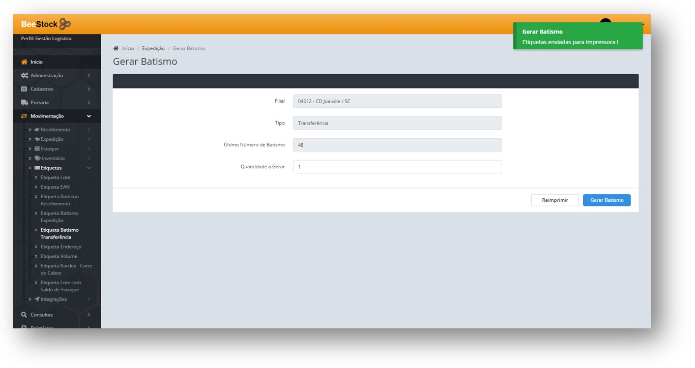 In this example, we see the receipt process, where an NFE moves from the REC warehouse to WMS and, after the receipt process, goes to the RV1 warehouse: