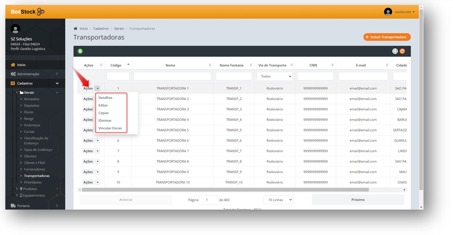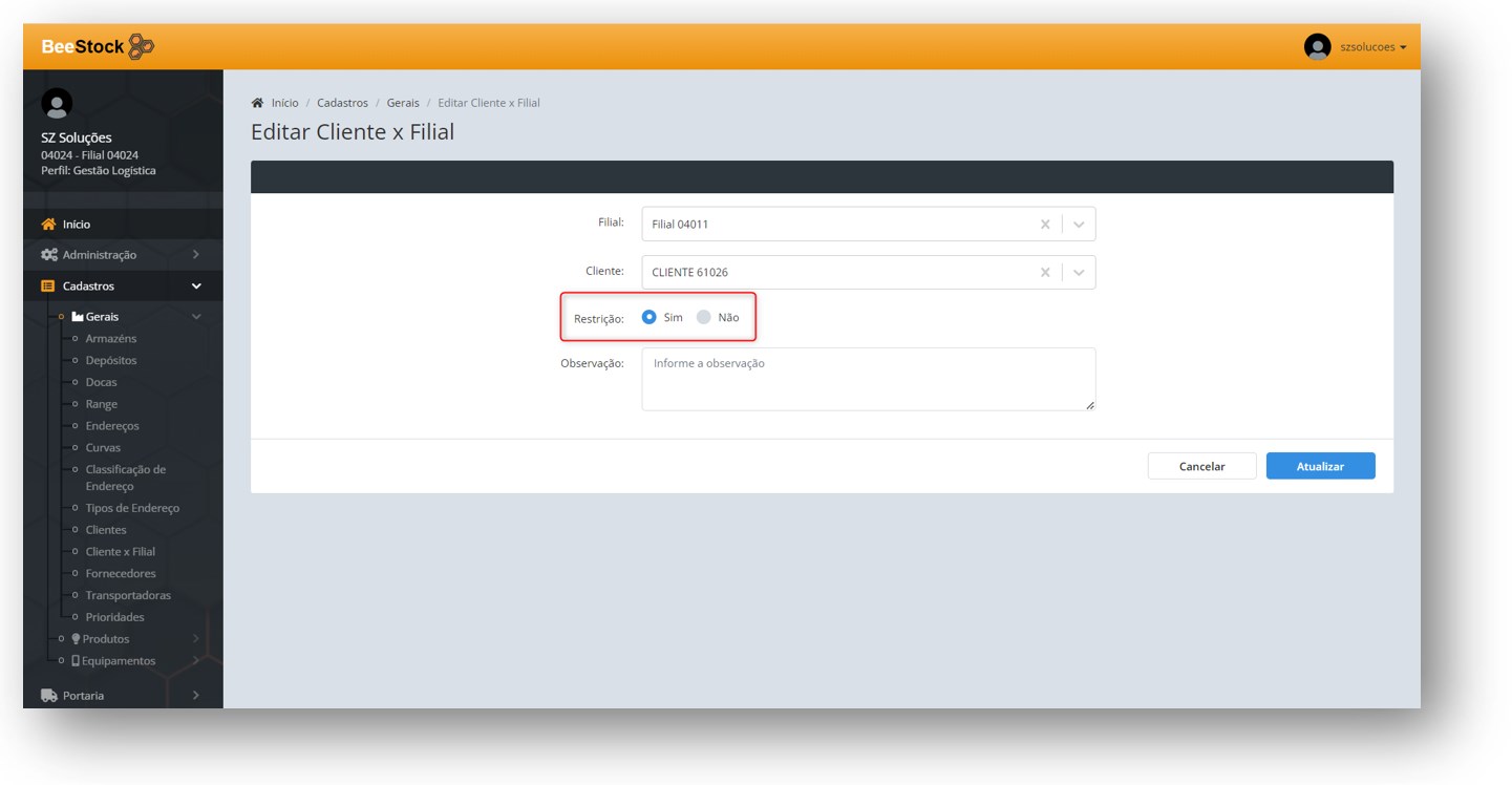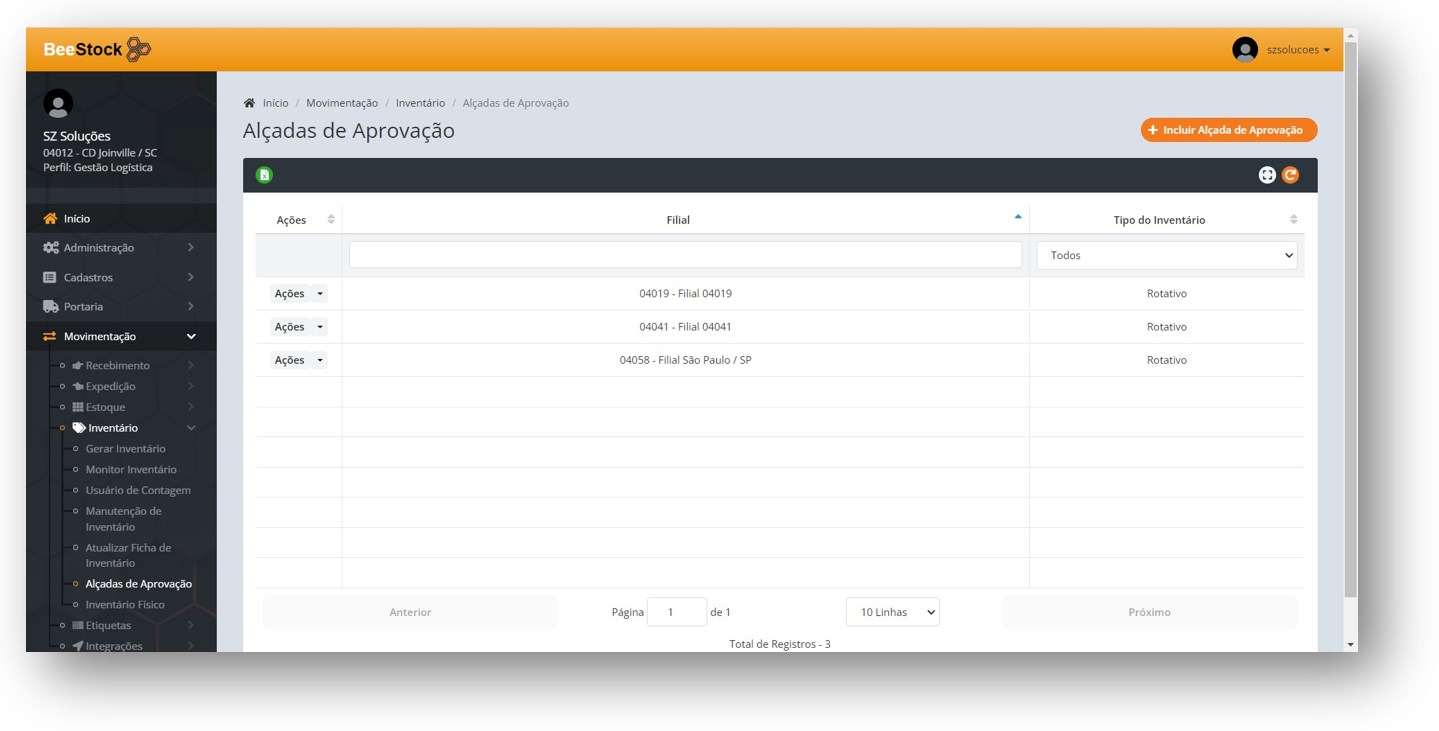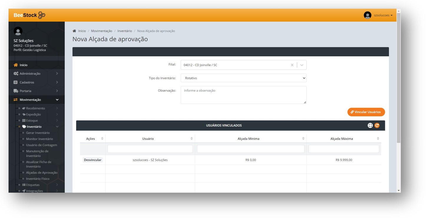 We recommend caution when changing parameters on this screen, if you have any questions, you should request assistance from SZ Soluções Support, as these are routines that influence the entire system.