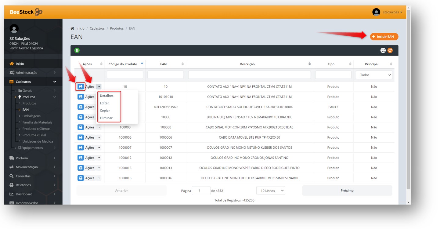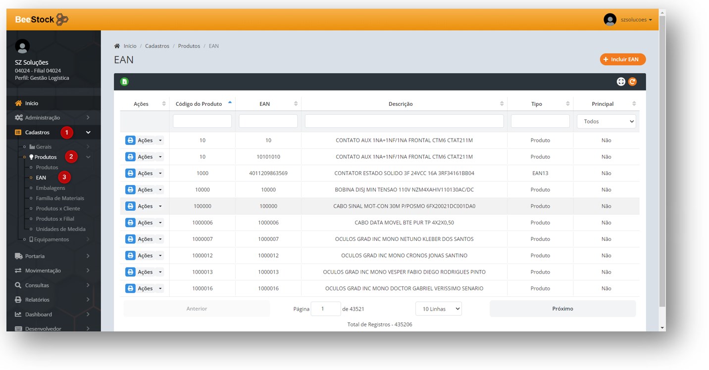 Located in the Inquiries > EAN menu, this screen will list the item and its respective EAN.