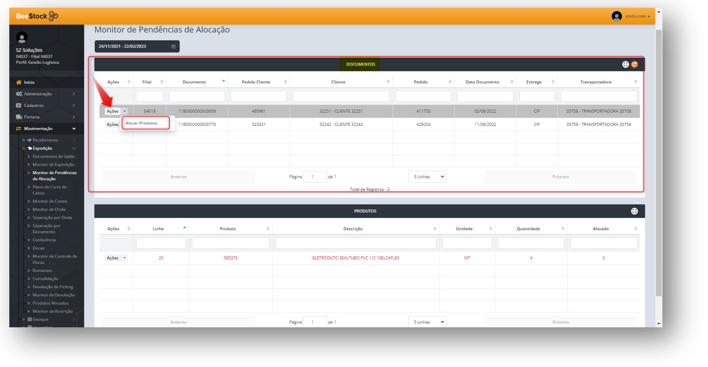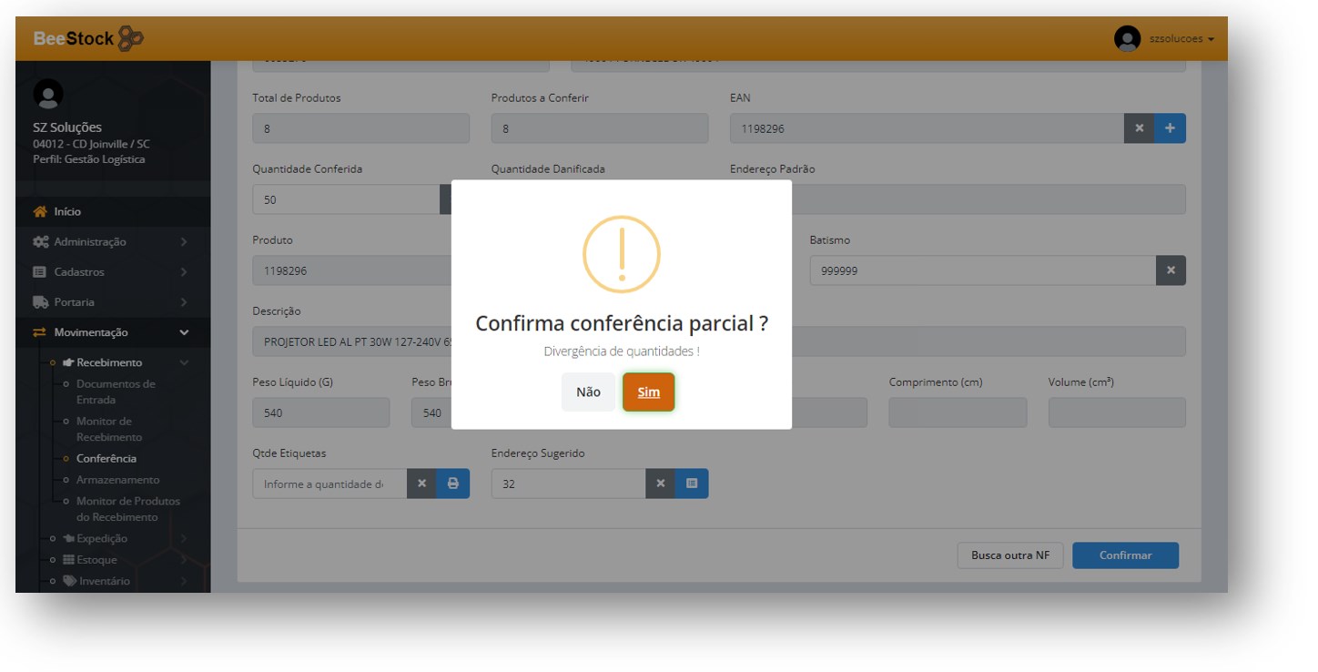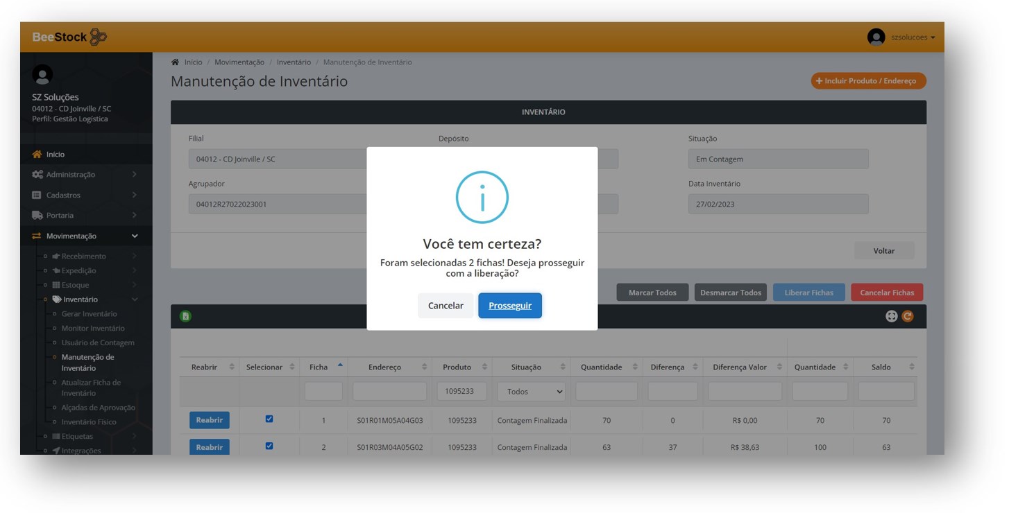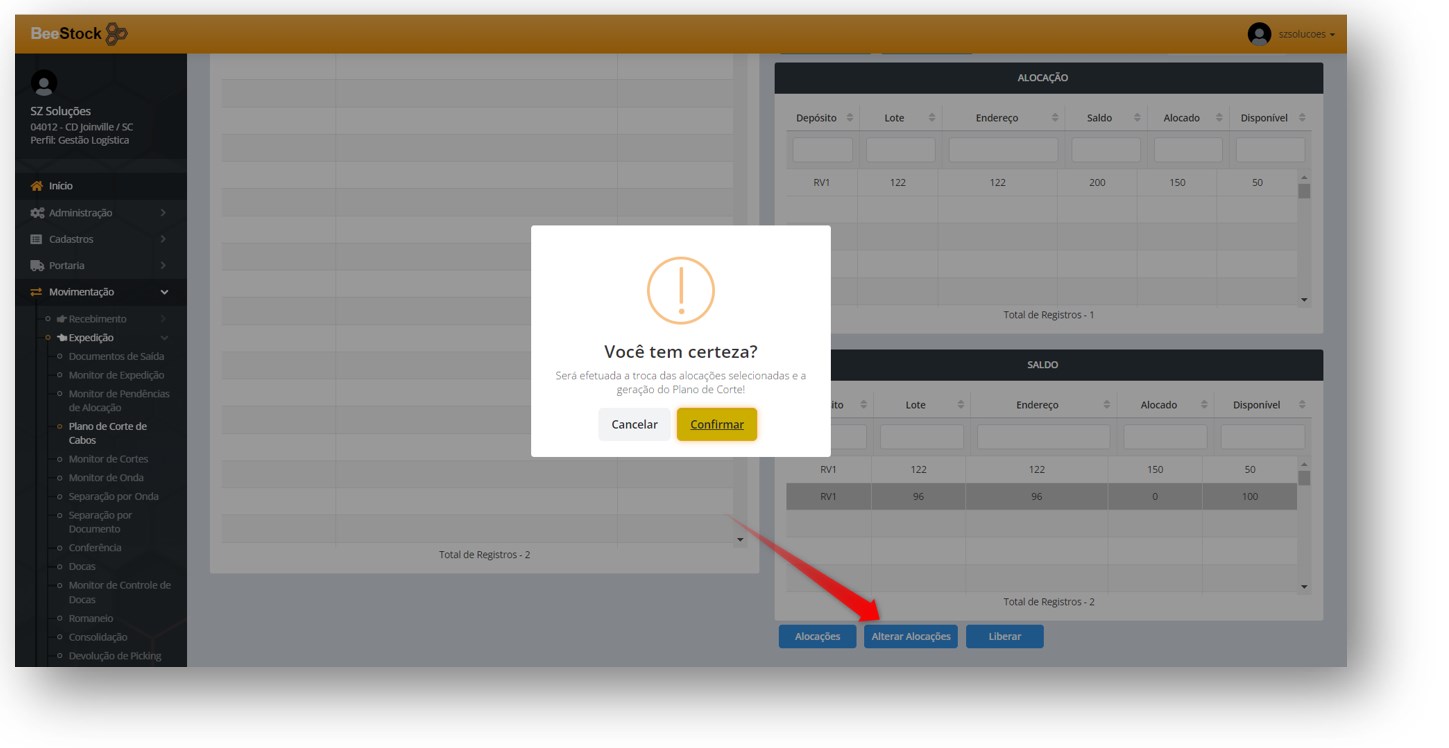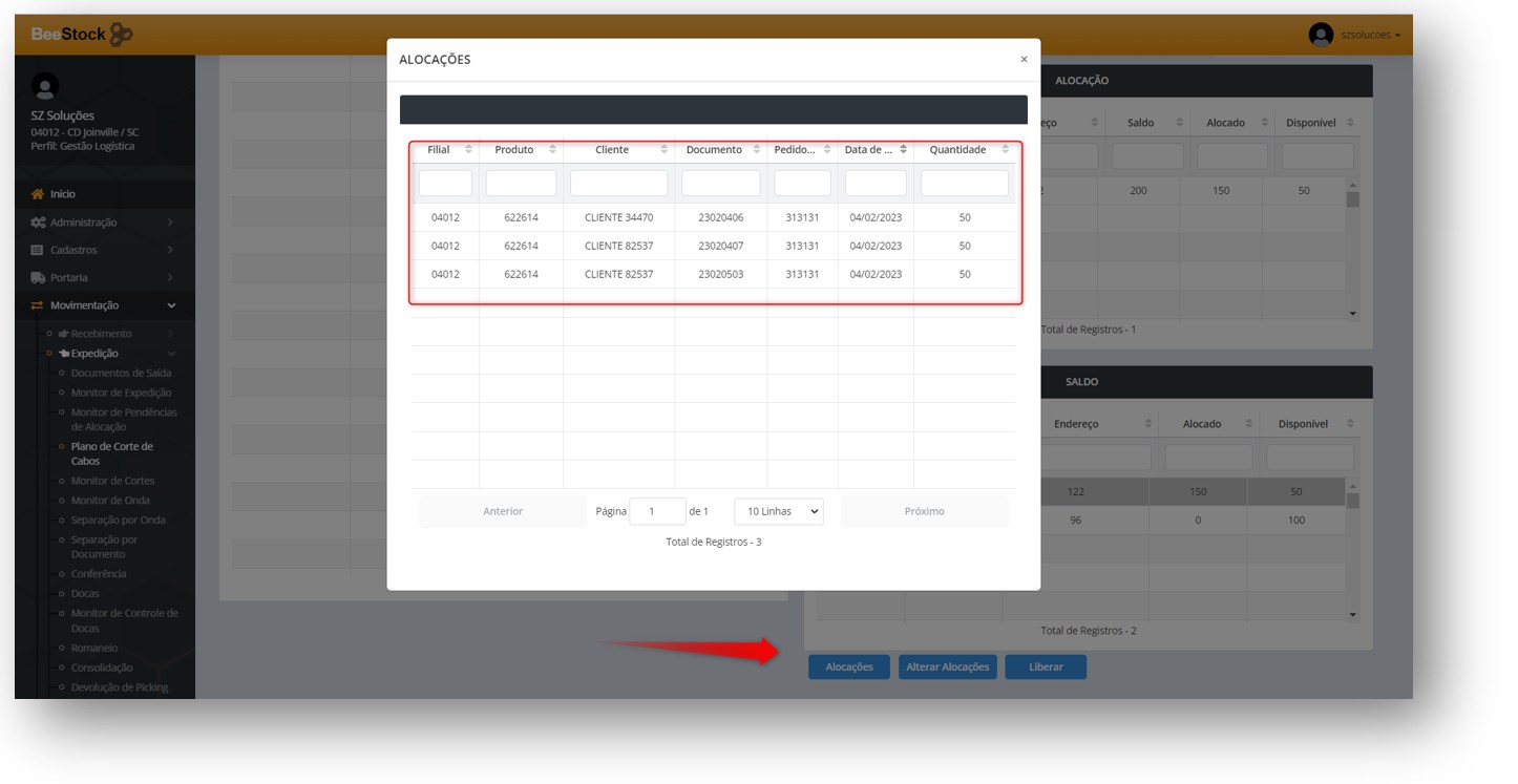 When picking the material at the address via collector, for example, the allocated quantity is already deducted from the balance, making the adjustment in WMS.