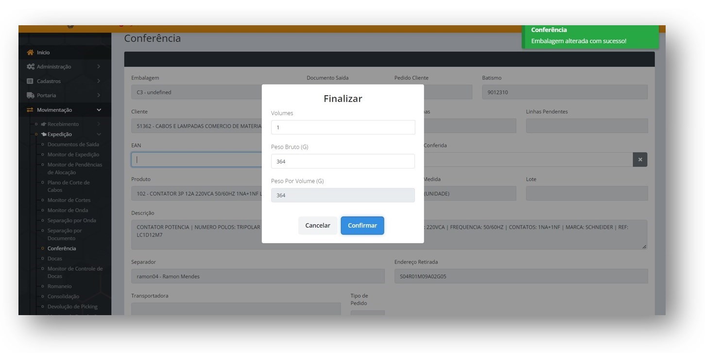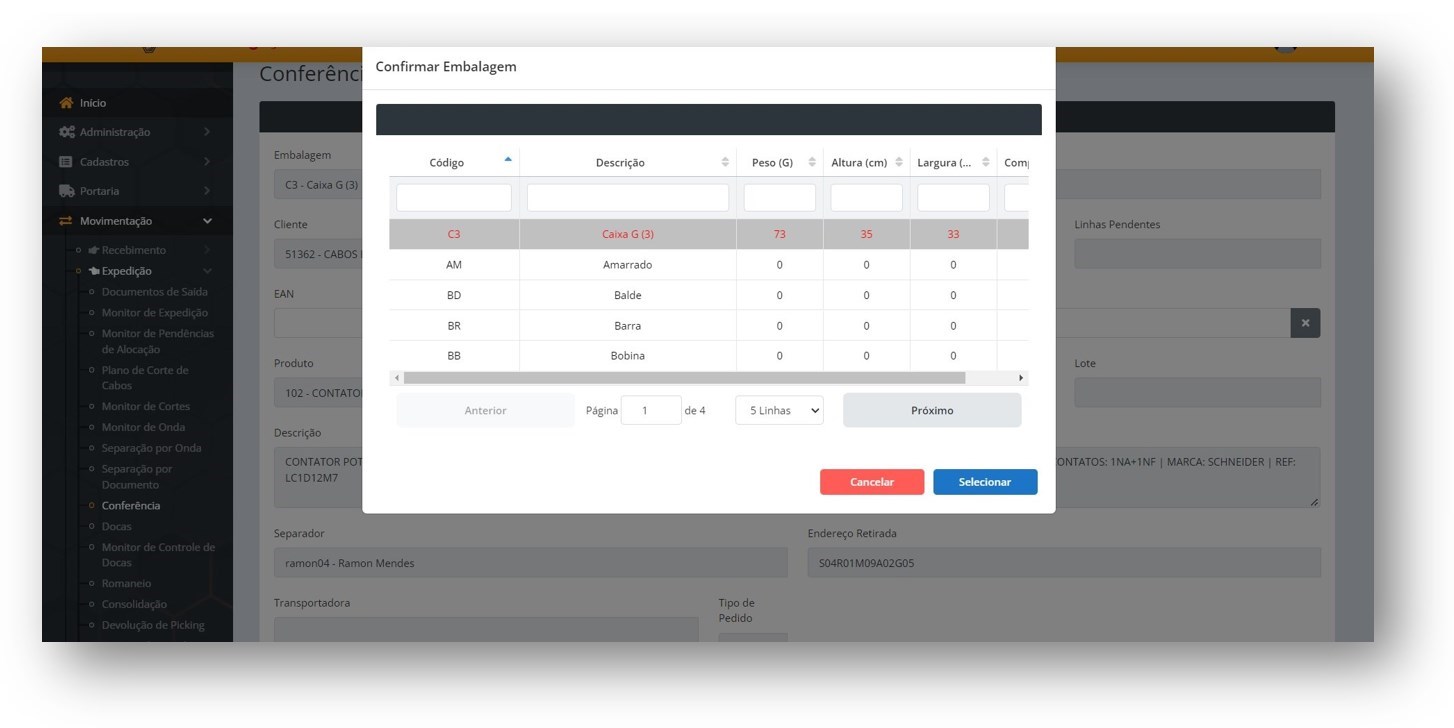 - Default packaging must be informed the default packaging suggested in the check and used automatically as packaging if the parameter Automatic Check After Picking by Document is checked.