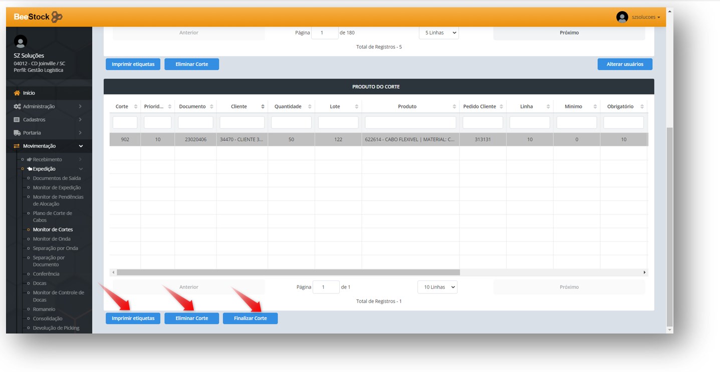 - Automatic picking after cable cutting informs if, after cable cutting, product picking will be performed automatically.