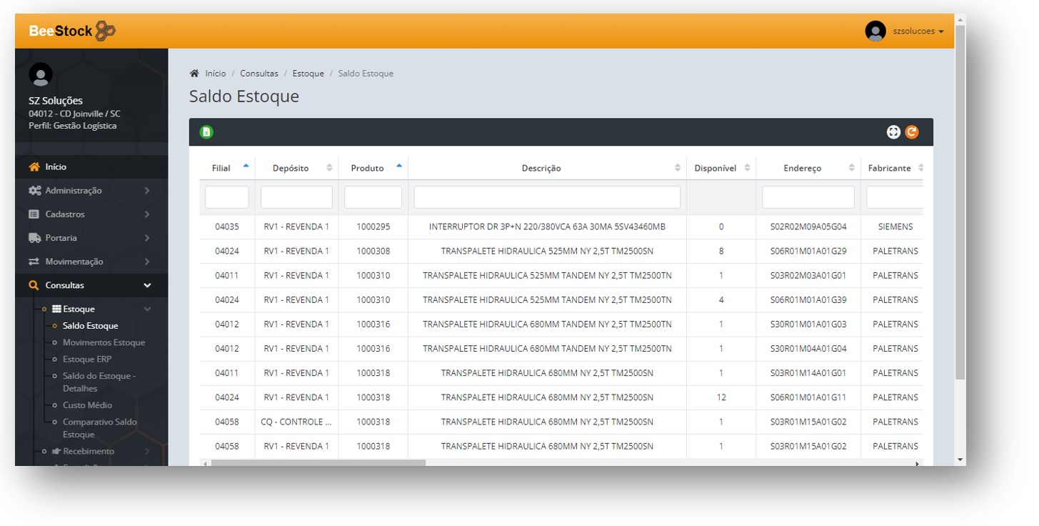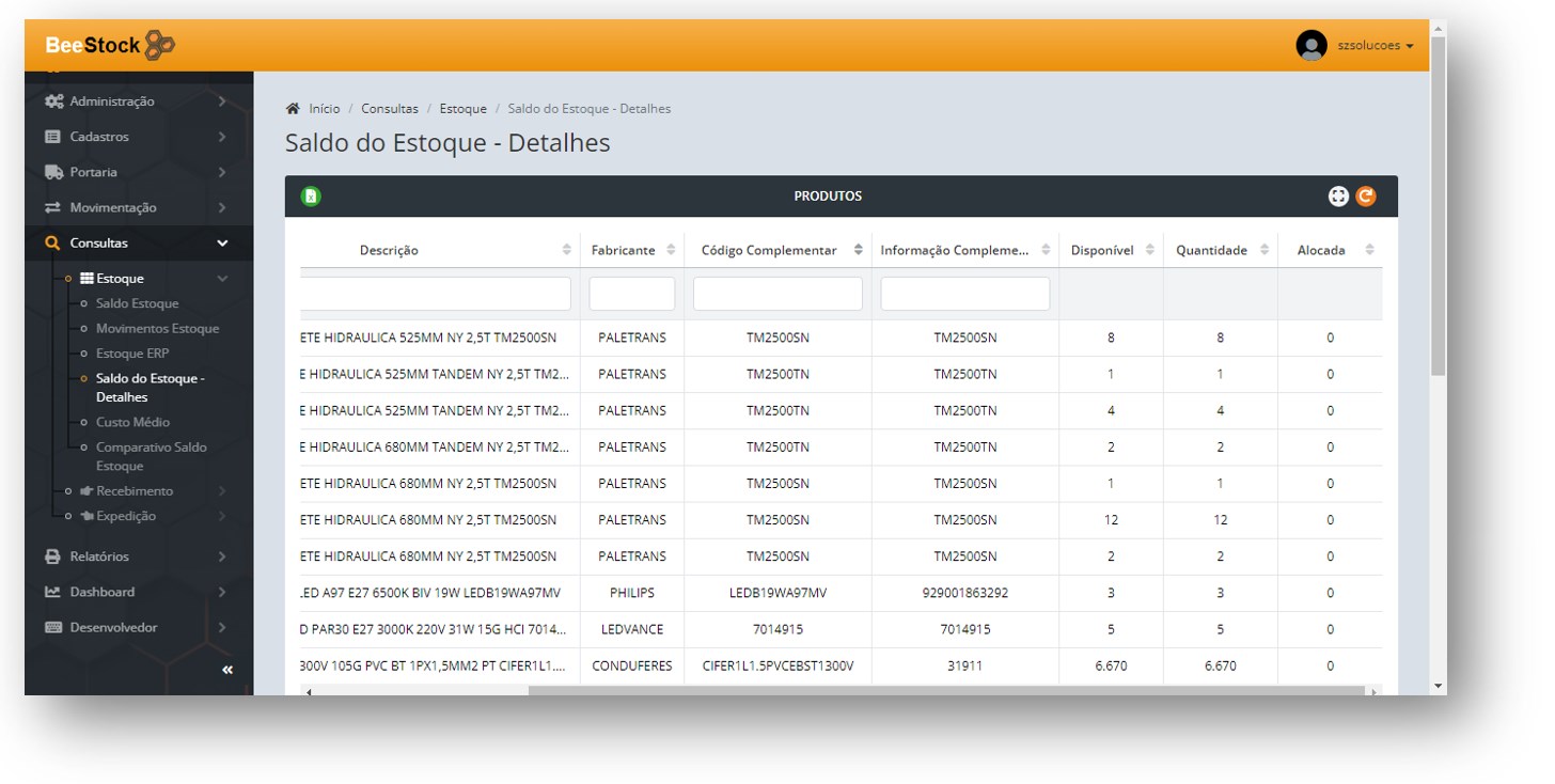 Located in the Inquiries > Inventory > Stock Balance - Details menu, this screen lists the product balances with more detailed information.