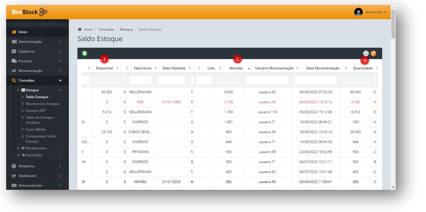 We can see the difference between the Quantity, Available, and Allocated columns, which were explained in the Stock Balance Manual.