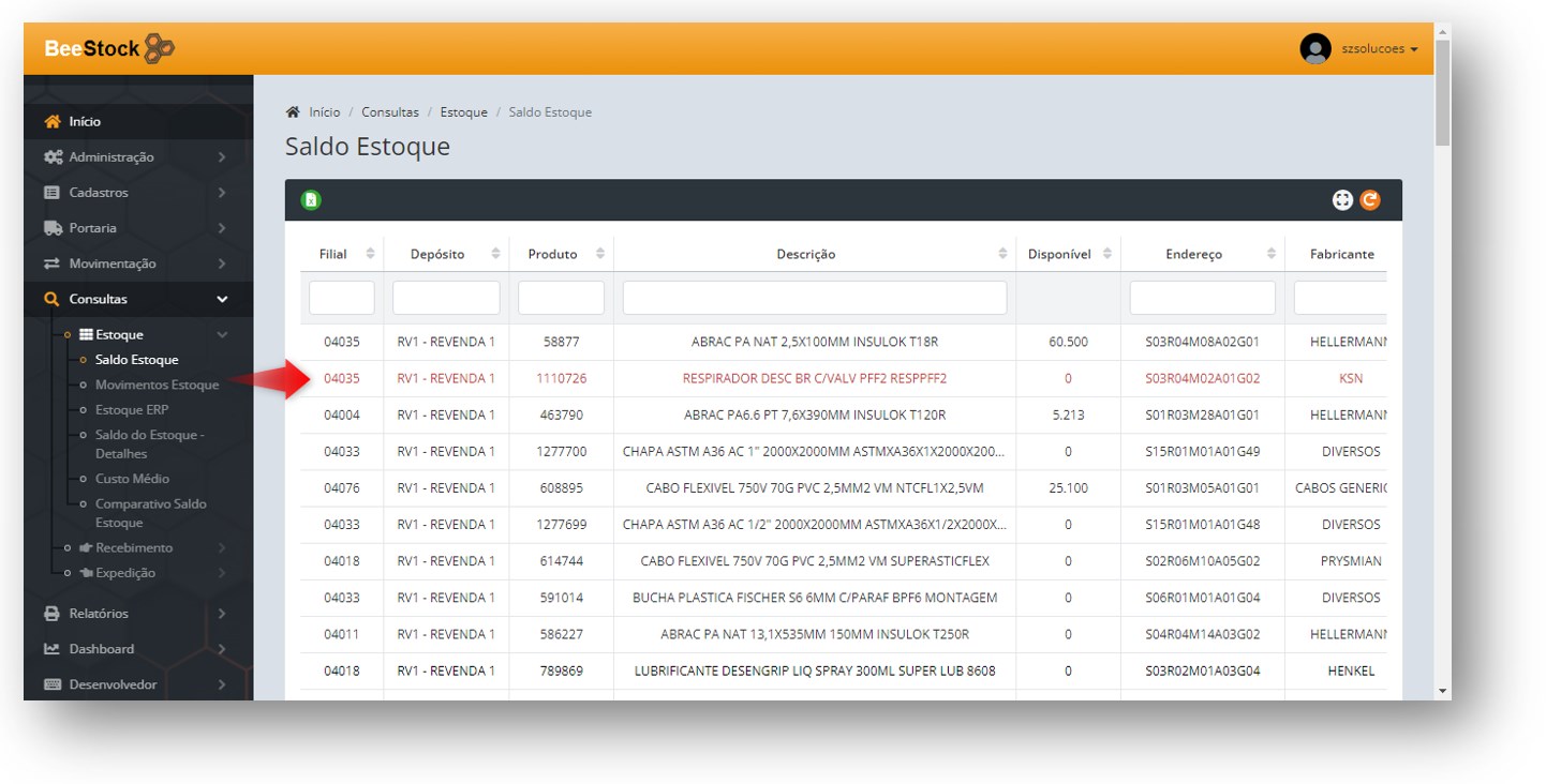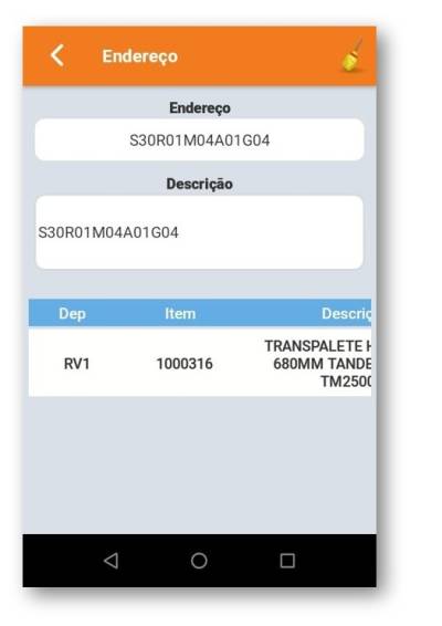 Located in the Inquiries > Address menu, this screen will list the address and the items located there, along with their respective stock balances.