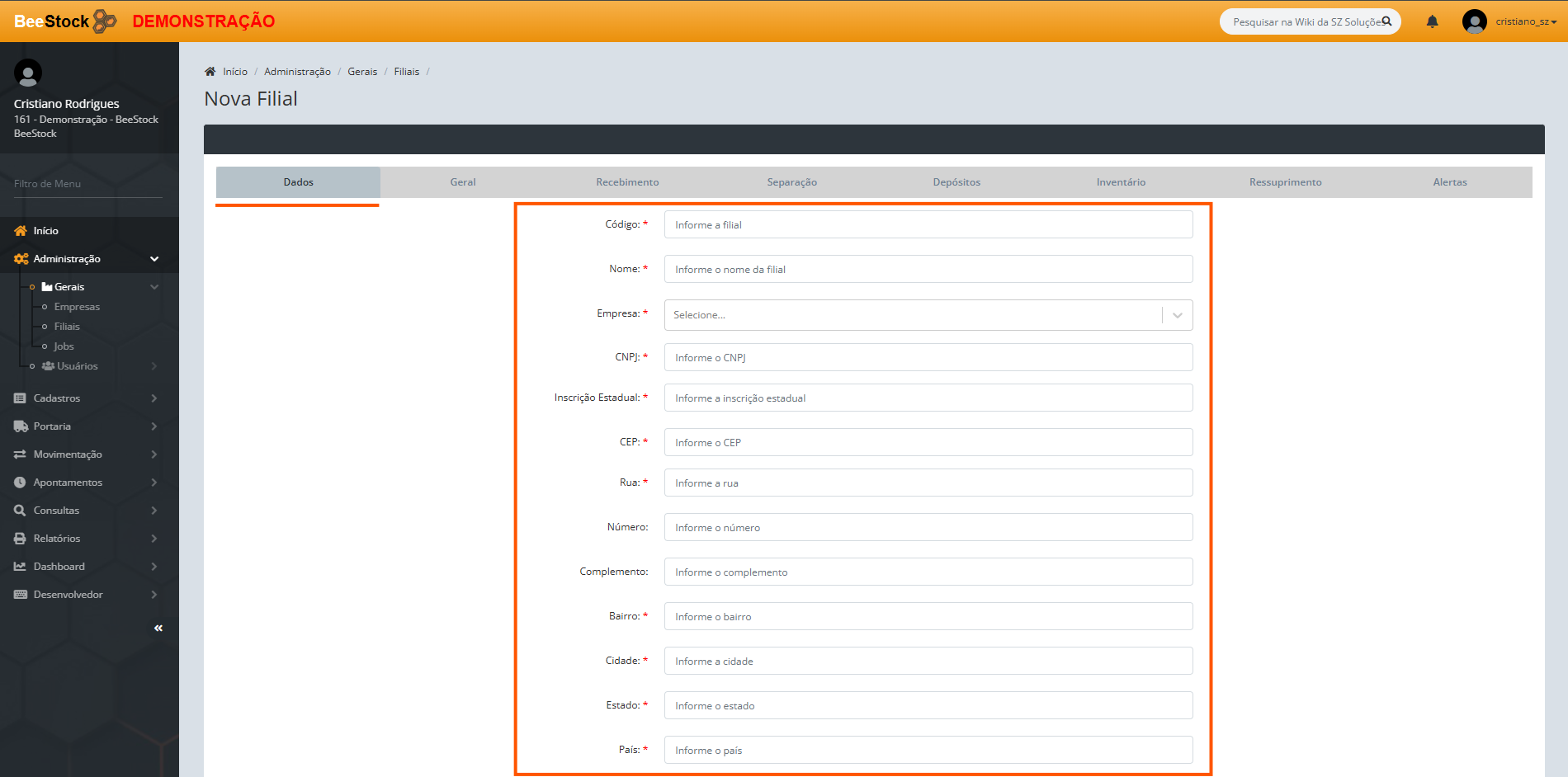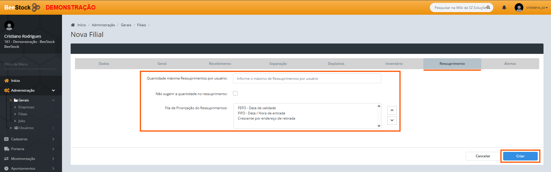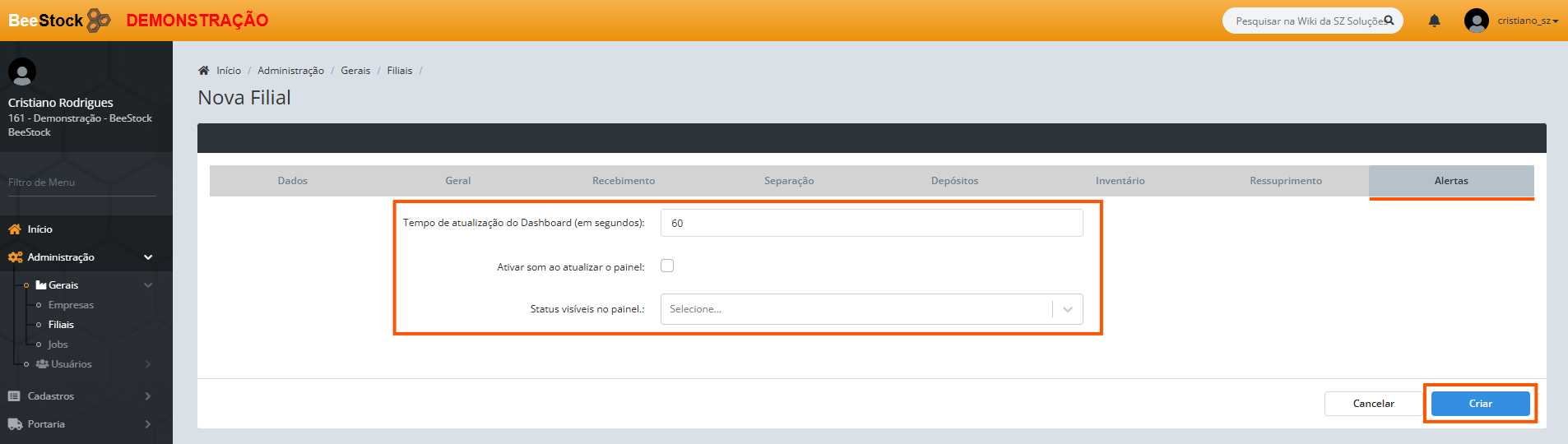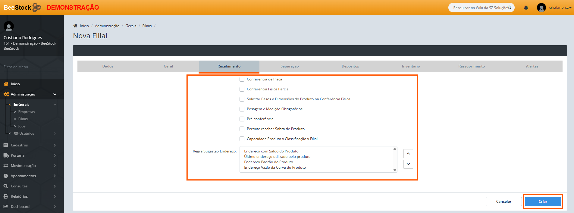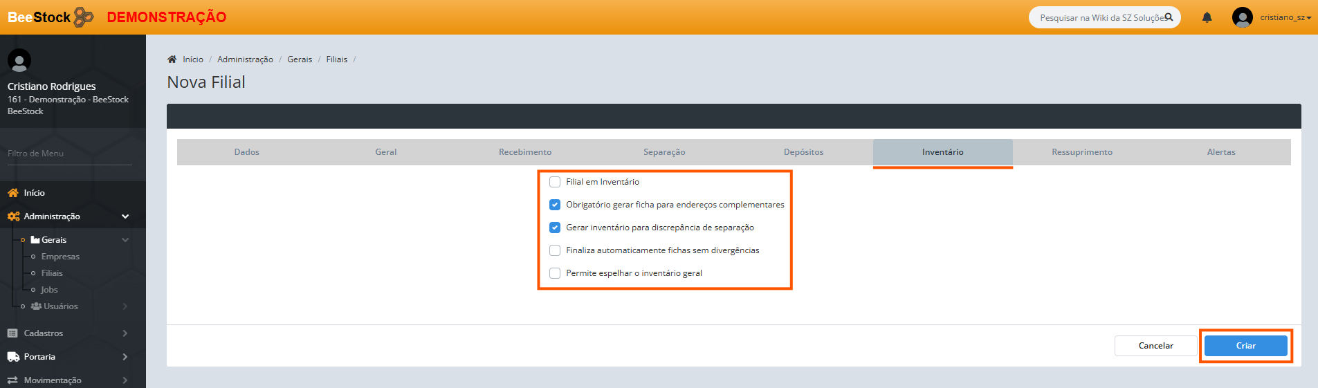2. Clique em Criar para finalizar o cadastro da nova filial.