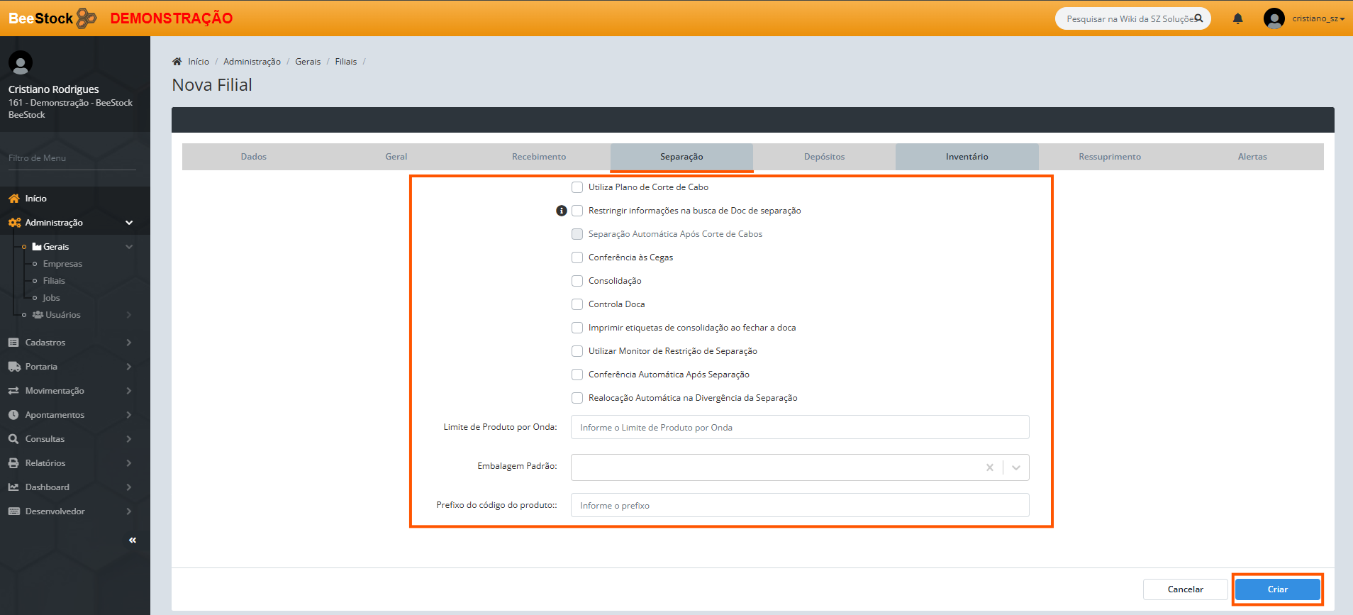 - Conferência às cegas informa se a conferência dos produtos na separação será realizada às cegas, ou seja, sem conhecimento prévio do produto a ser conferido.