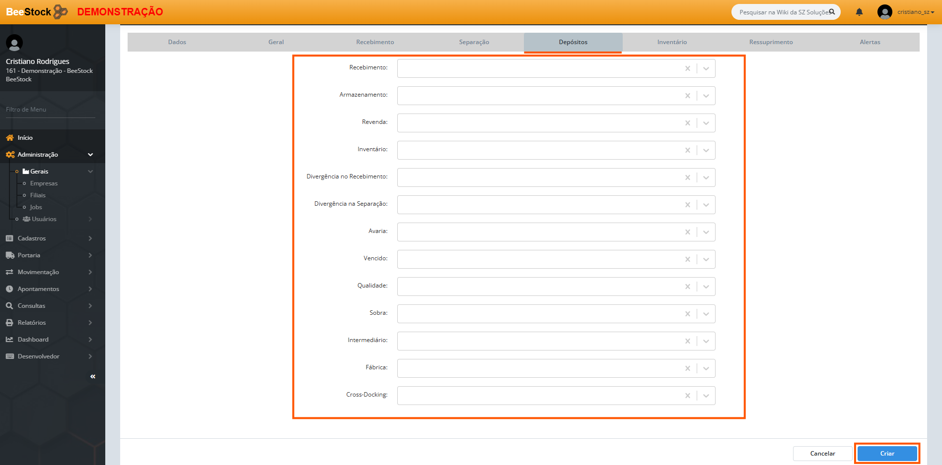 Devem ser informados os depósitos para cada etapa do processo selecionando nos campos: