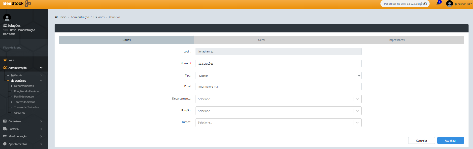- Picking - informa se este funcionário terá acesso ao processo de picking.