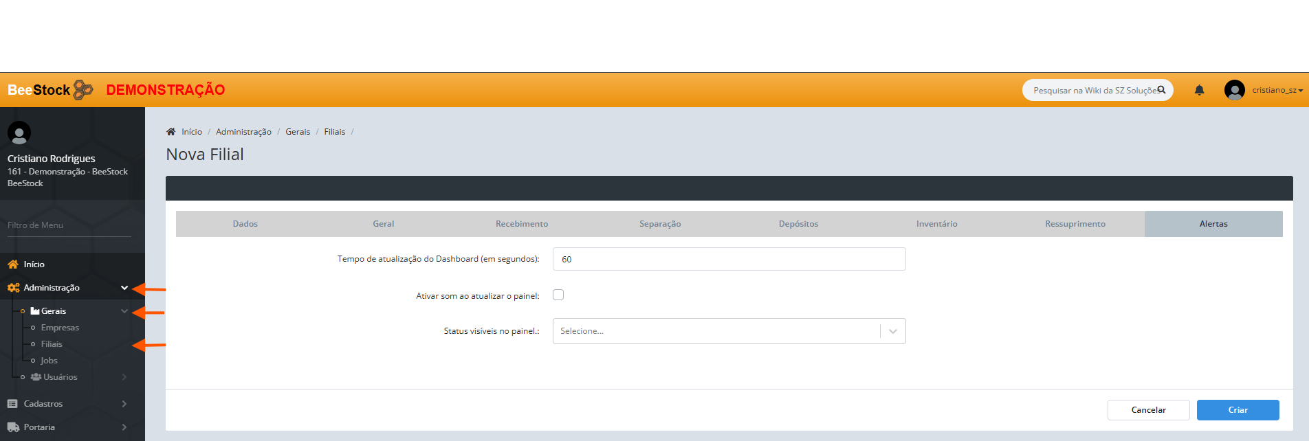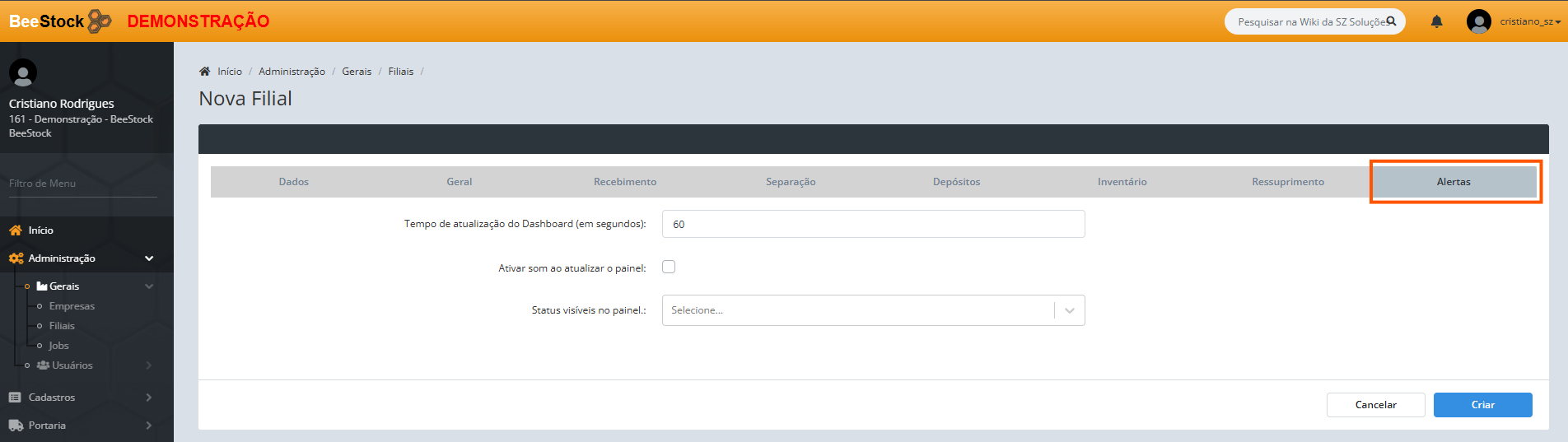 3. Preencha os campos necessários até chegar na aba Alerta.