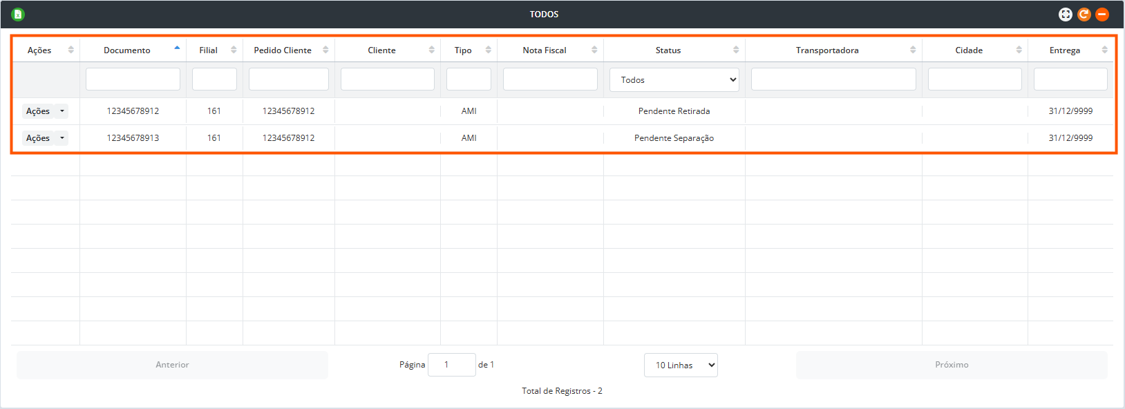 - Entrega: Data prevista de entrega.