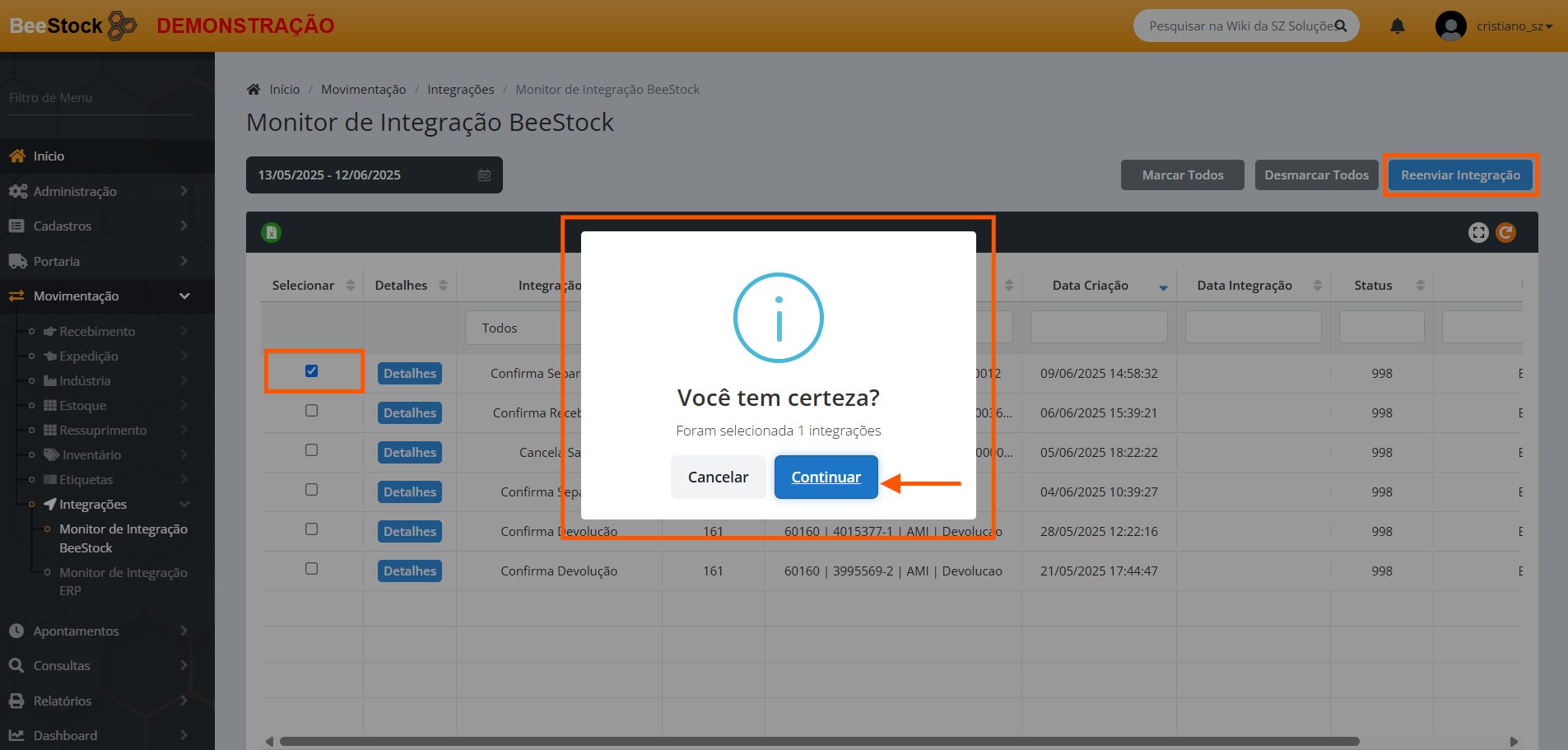 Localizados no menu Movimentação > Integrações > Monitor de Integração ERP, nesta tela será possível acompanhar as integrações ocorridas com o ERP.
