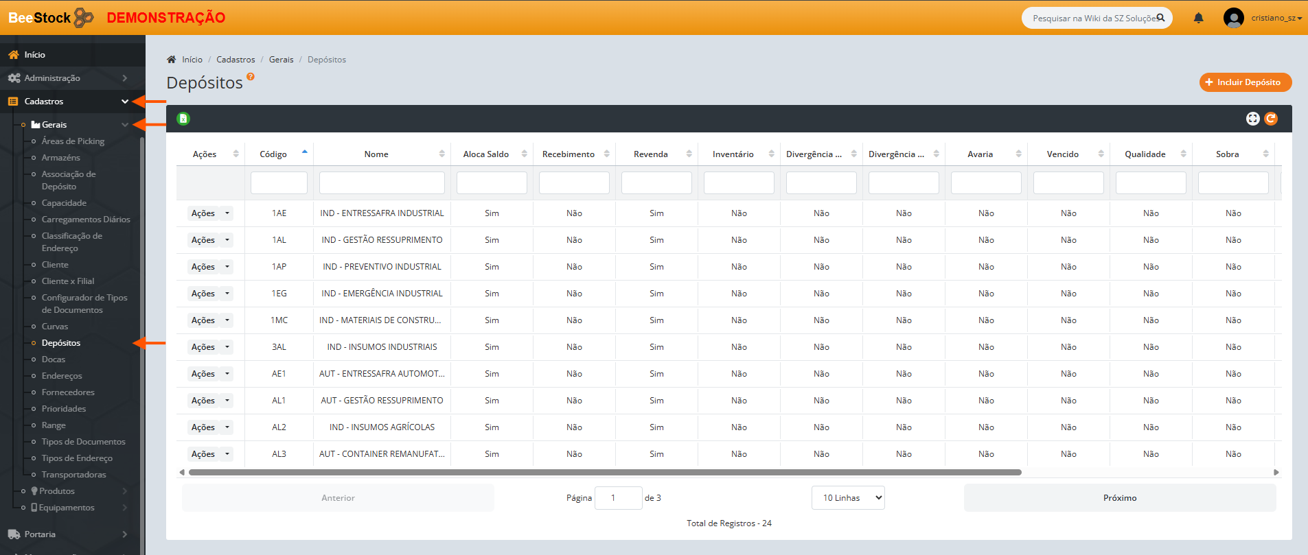 1. Utilize os filtros para refinar a busca (ex: por Depósito).