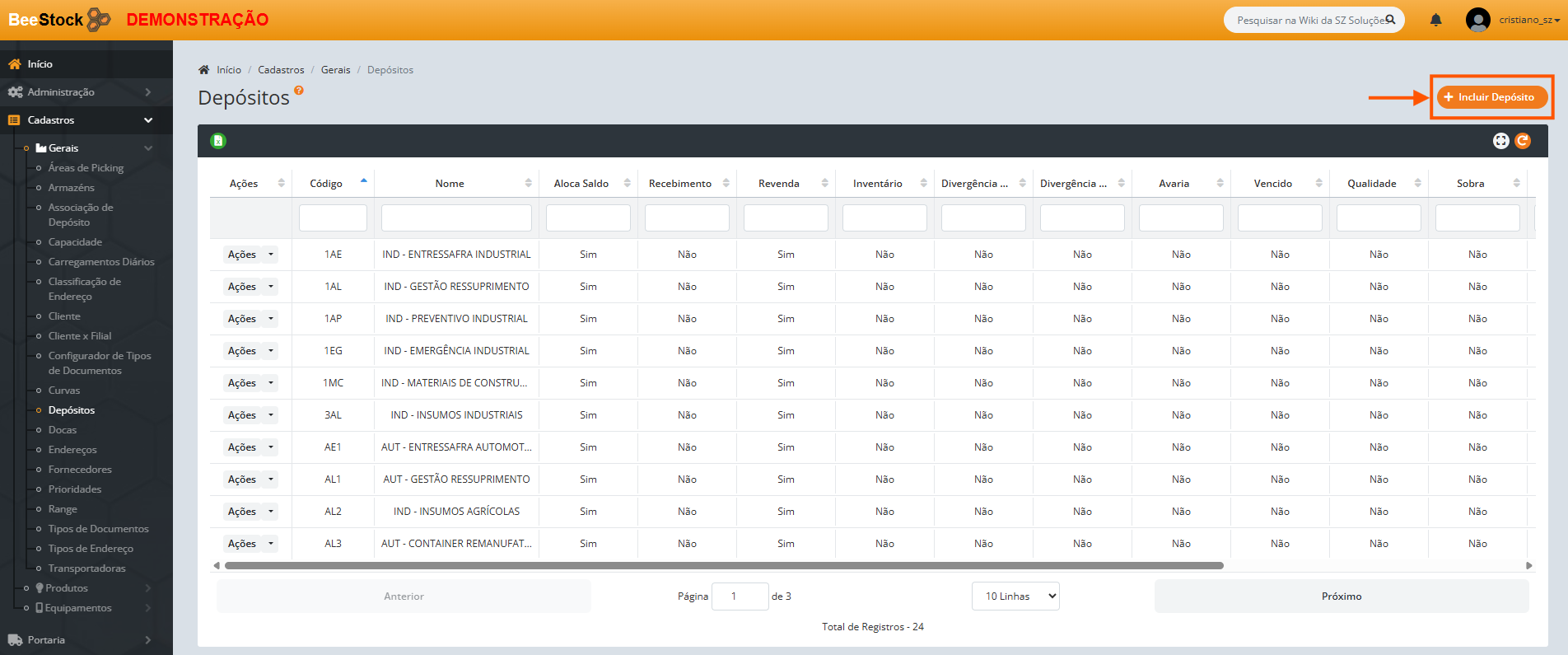 2. Clique no botão + Incluir Depósito.
