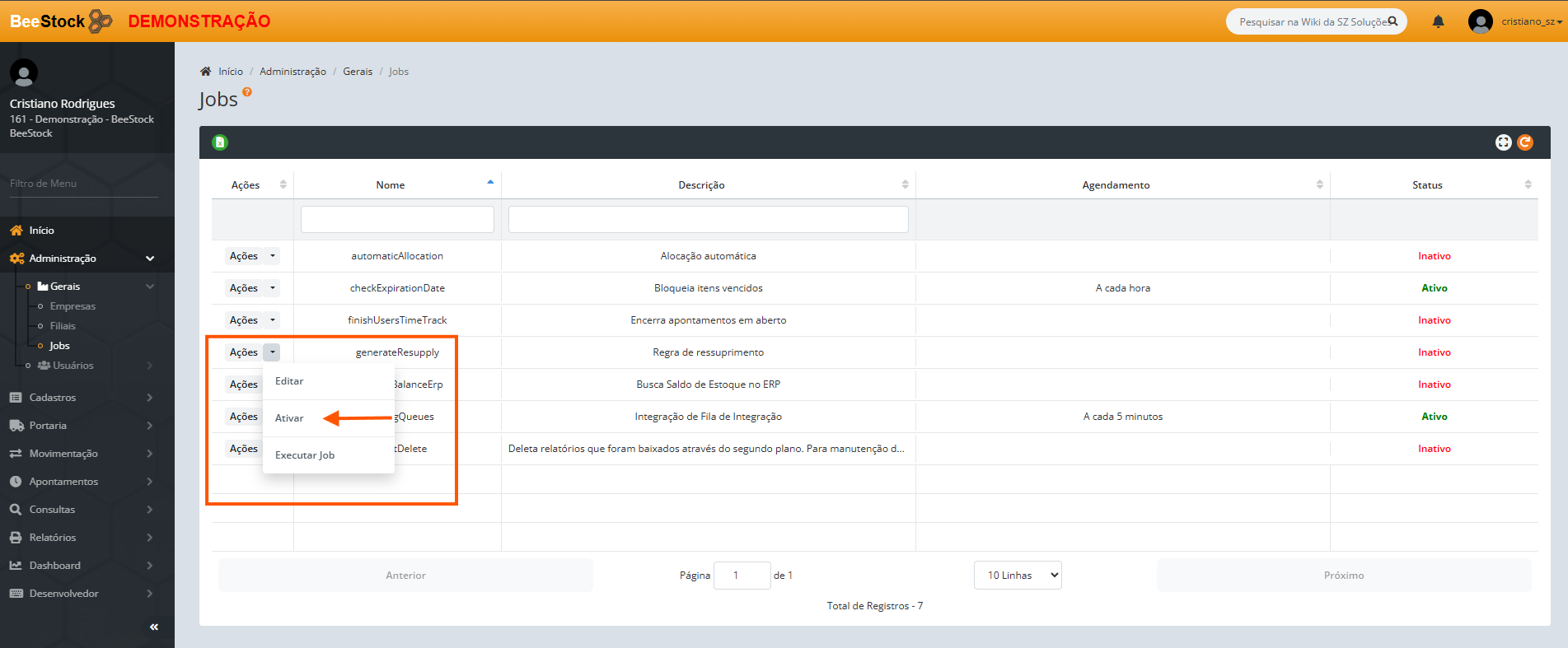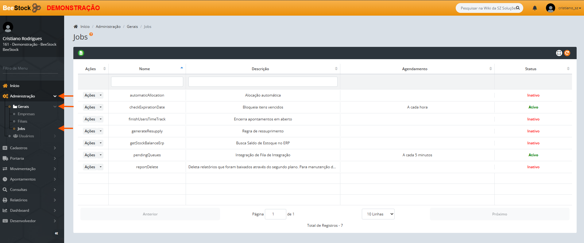 Administração > Gerais > Jobs.