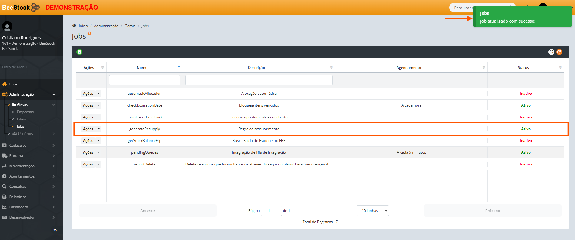 2. Com a regra ativa, é necessário que o job Geração de Regras de Ressuprimento esteja configurado e ativo em: