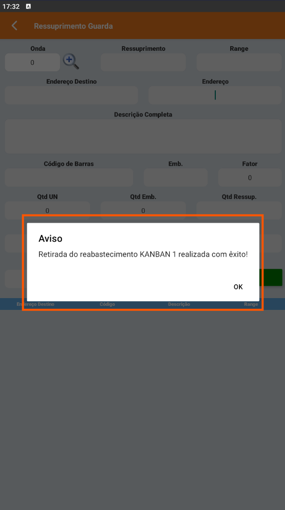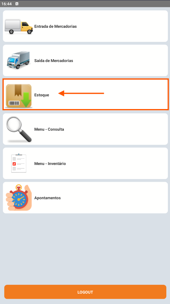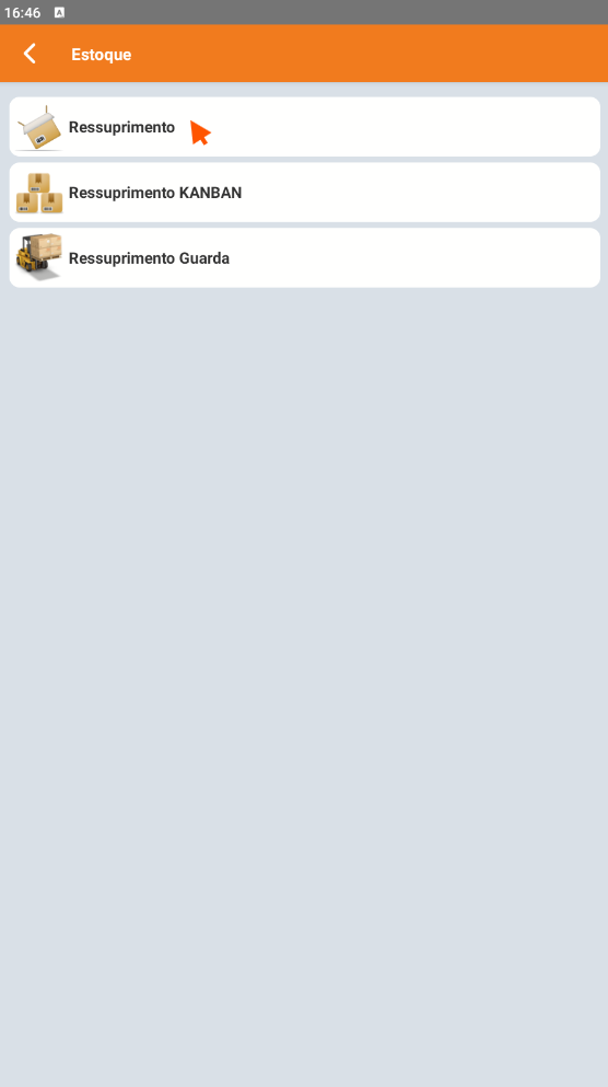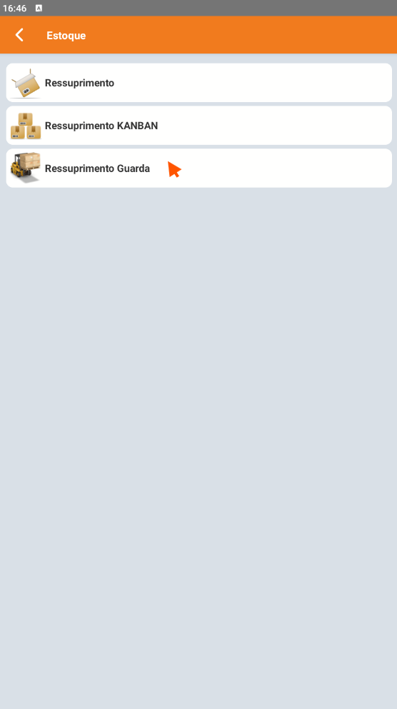 No Coletor, acesse o menu Estoque > Ressuprimento Guarda.