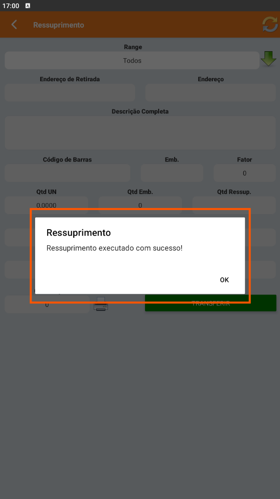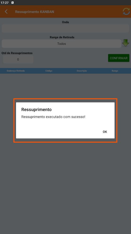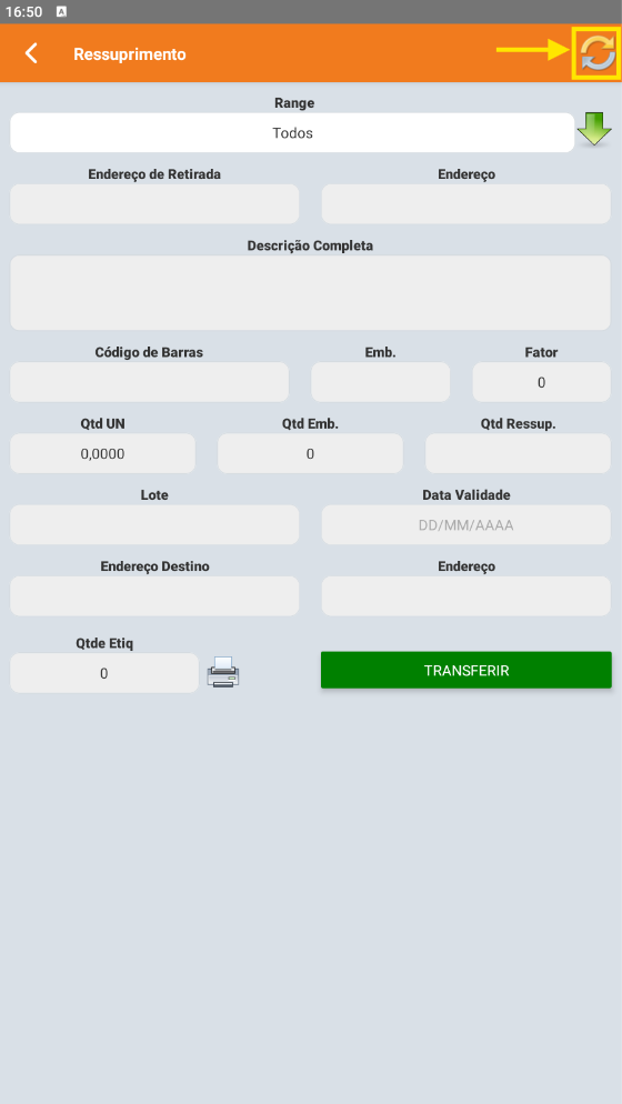 • Cancelar Ressuprimento: Cancelar a execução da tarefa.