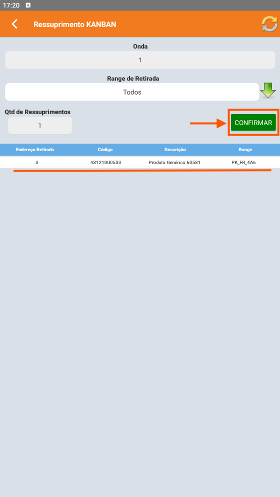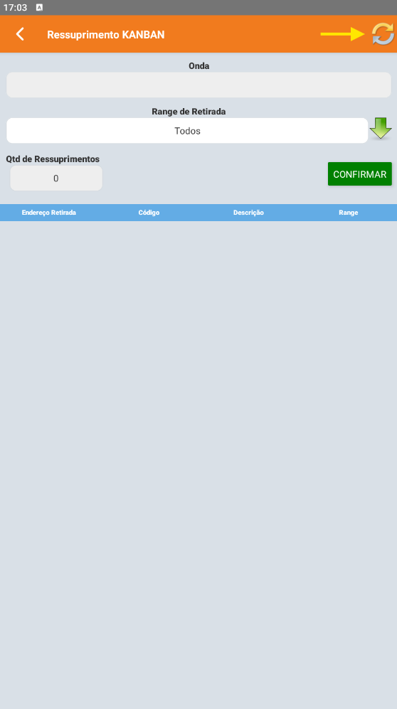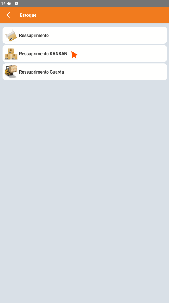 No Coletor, acesse o menu Estoque > Ressuprimento Kanban.