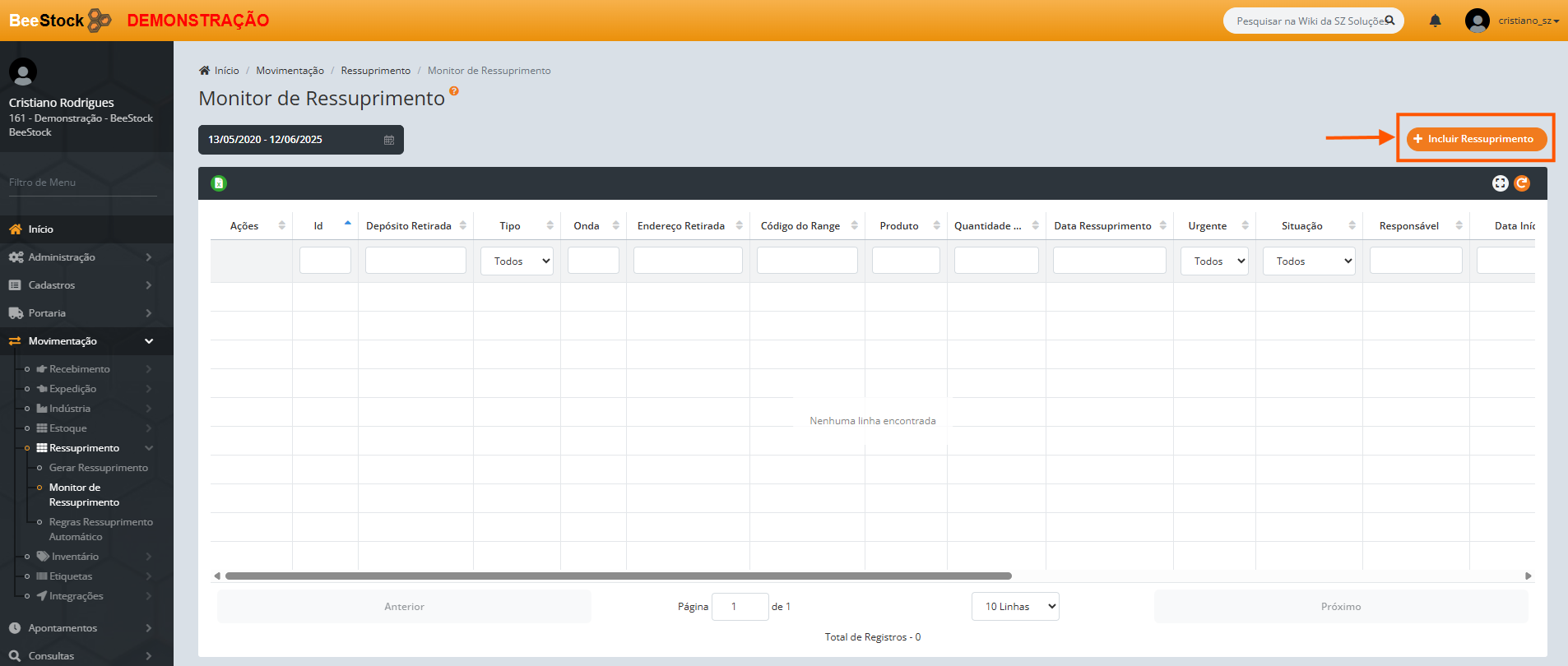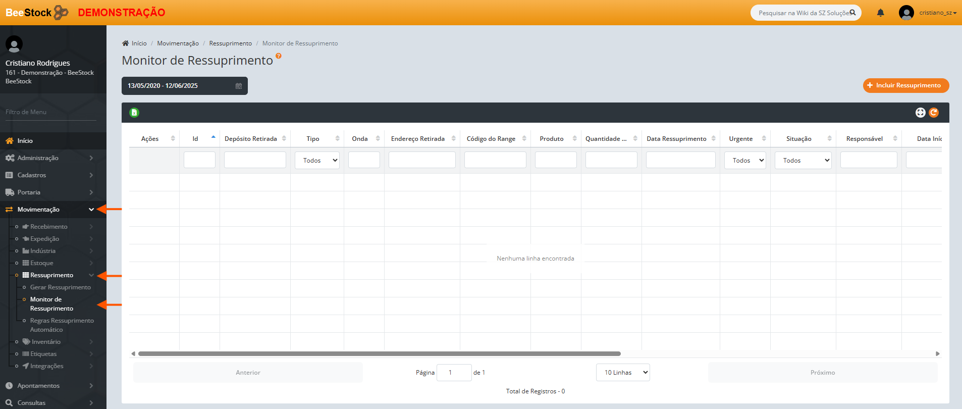 Localizado em Movimentação > Ressuprimento > Monitor de Ressuprimento, por aqui pode-se acompanhar a necessidade de ressuprimentos.