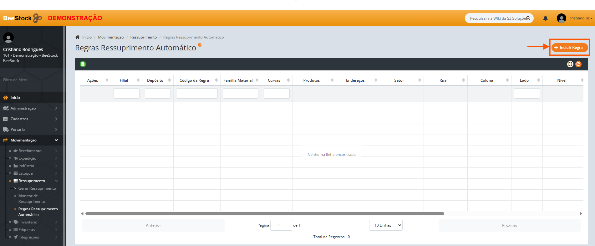 1. Clique no botão laranja + Incluir Regra.
