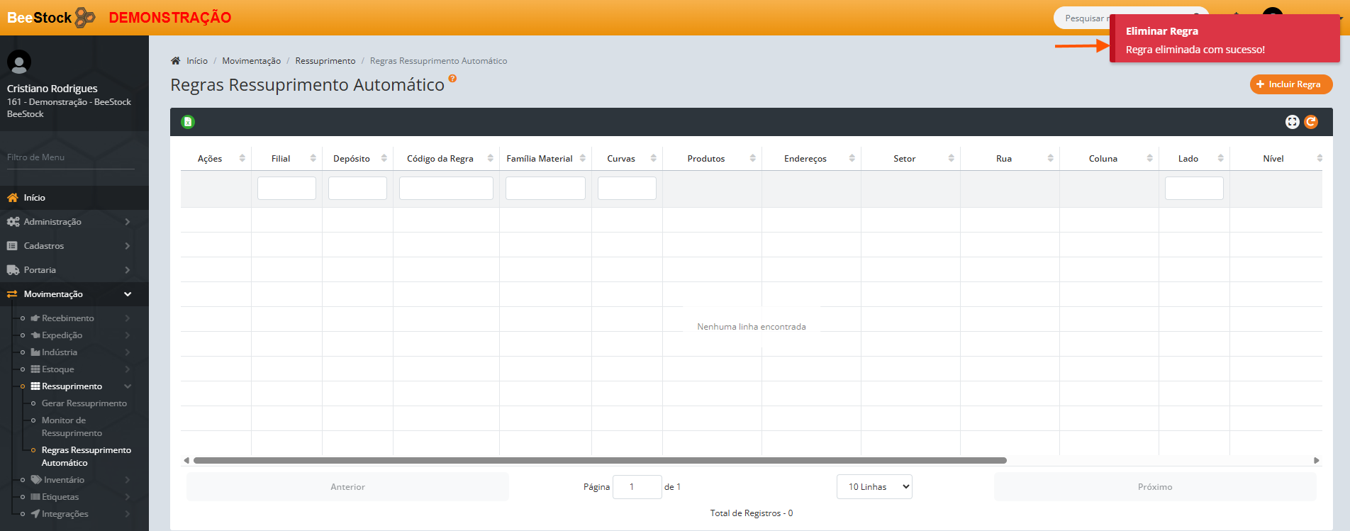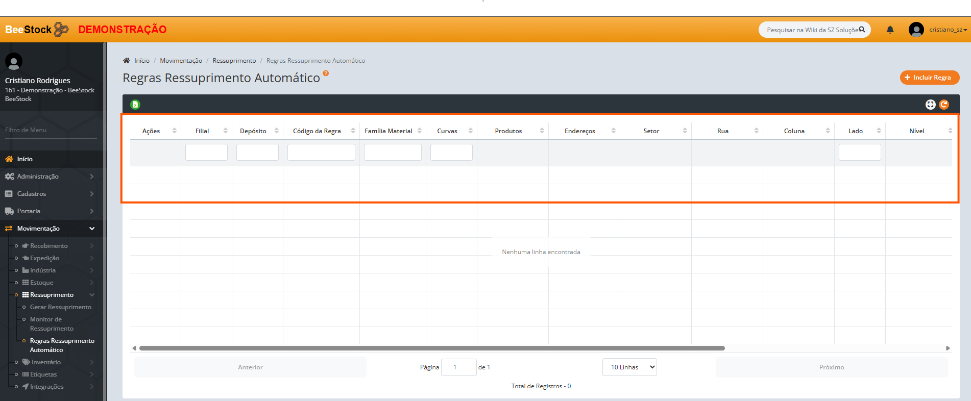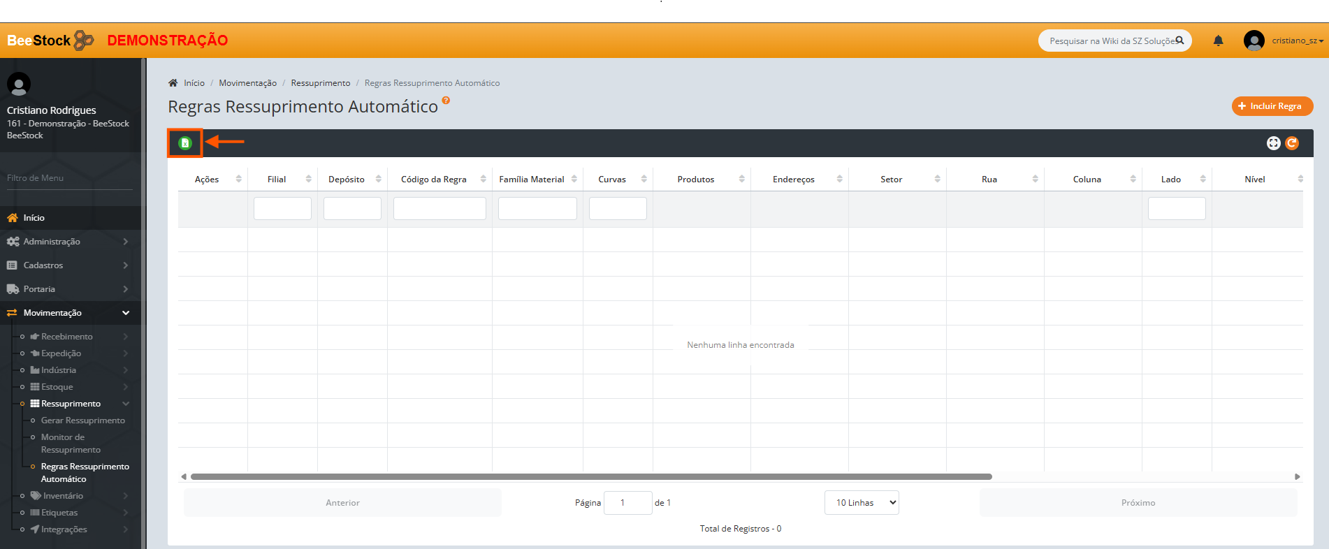 Localizado em Movimentação > Ressuprimento > Regras Ressuprimento Automático, por aqui pode-se incluir novas regras e verificar as existentes.