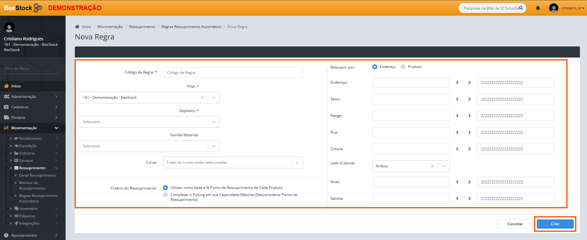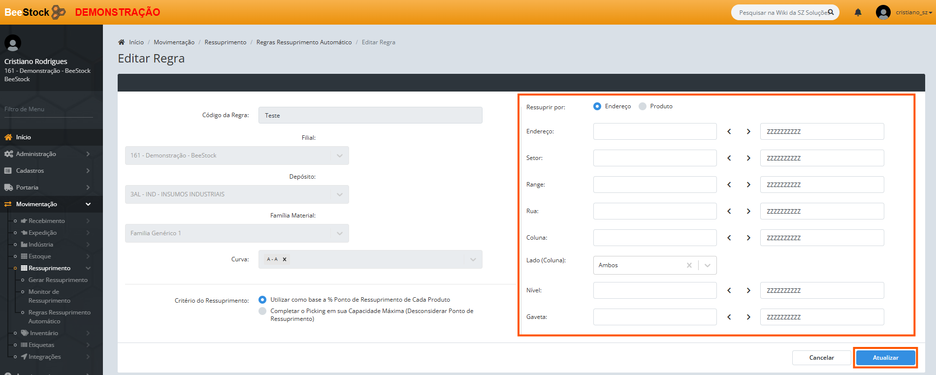 Regras Ressuprimento Automático