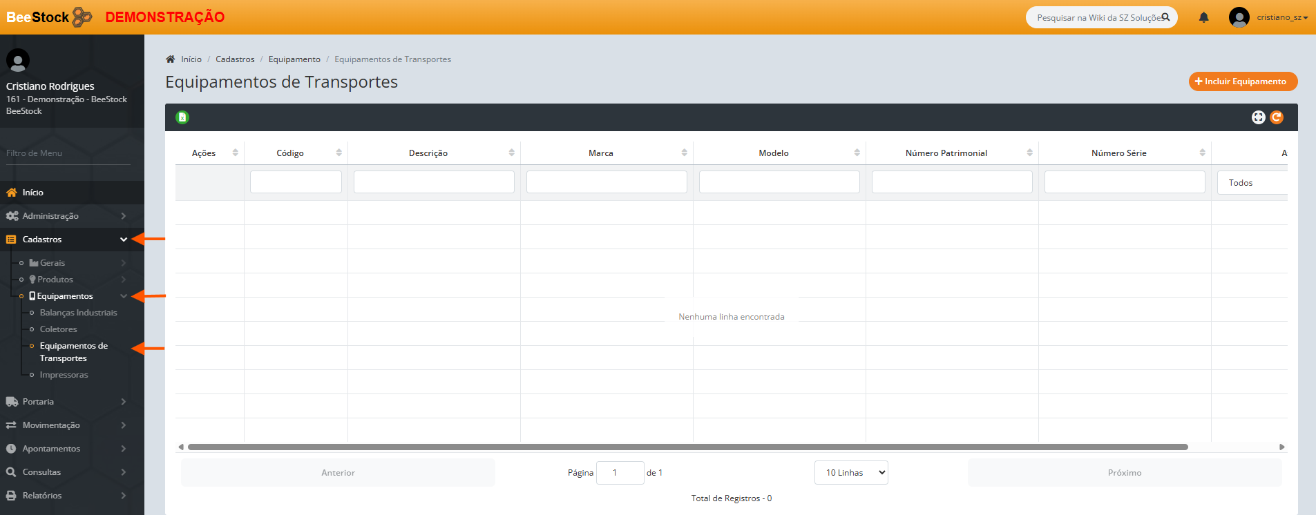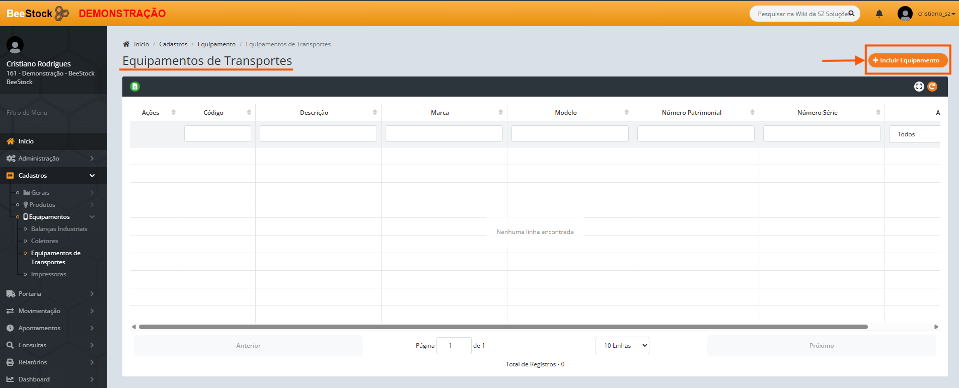 1. Clique no botão laranja + Incluir Equipamento.