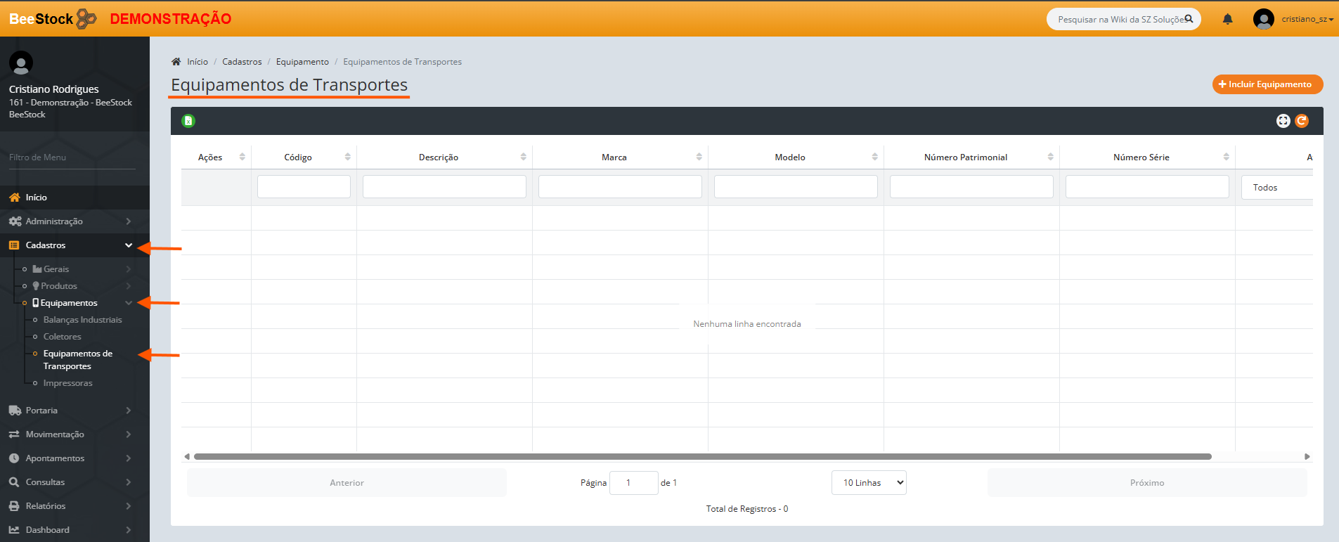 Passo a Passo Para incluir Equipamentos de Transportes:
