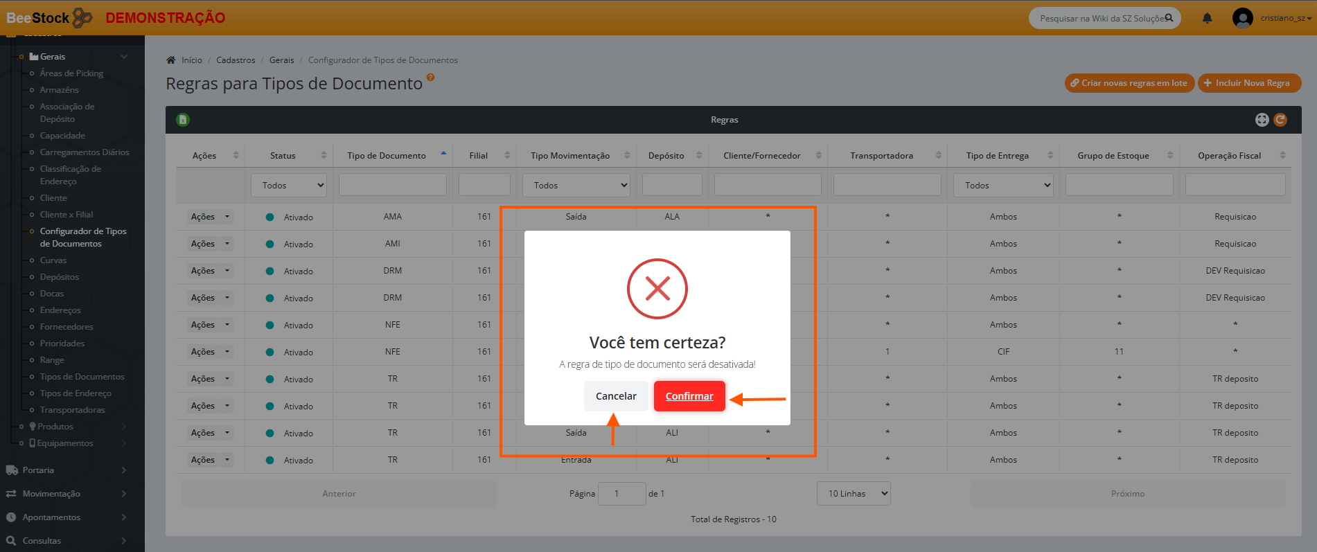 5. No botão Ações > Desativar o usuário pode desativar a nova regra, após clicar em Confirmar .