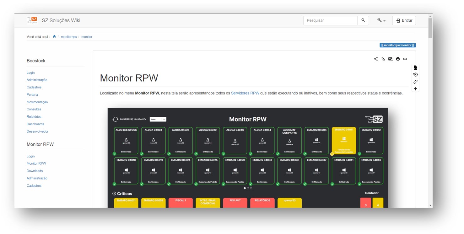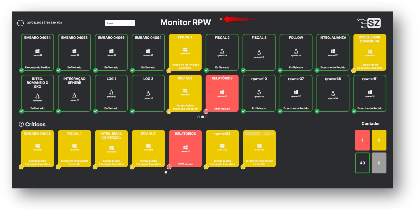 Nesta parte do monitor temos um conglomerado de todos os RPWs que estão apresentando alguma mensagem da categoria de erro médio e grave.